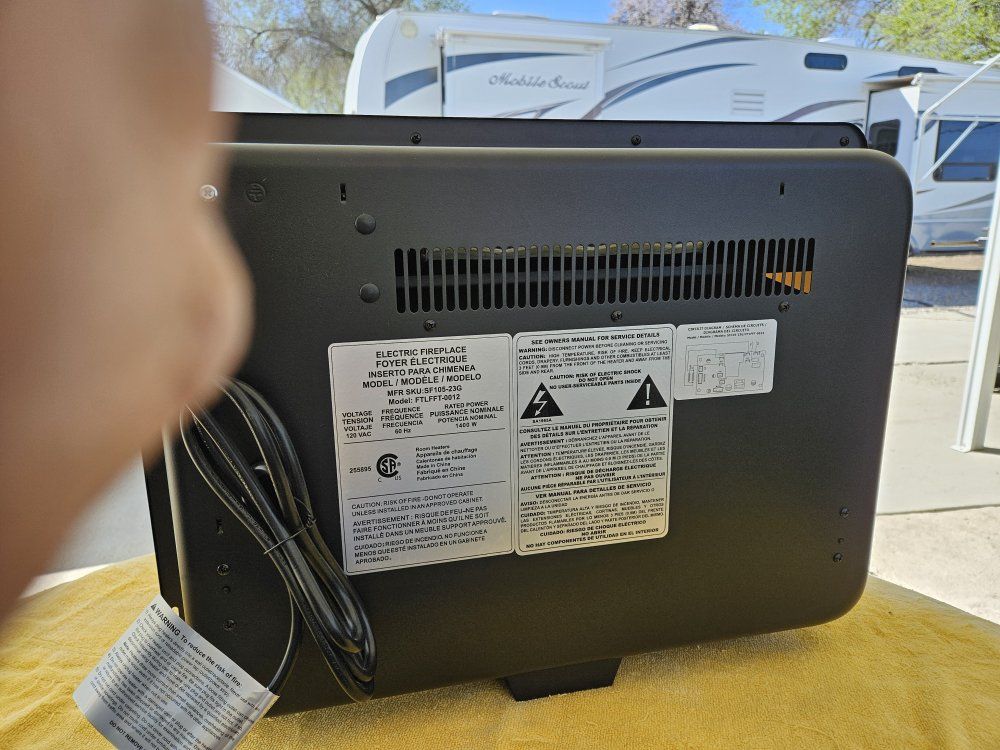 New electric fire place and room heater in original box. Never plugged in.