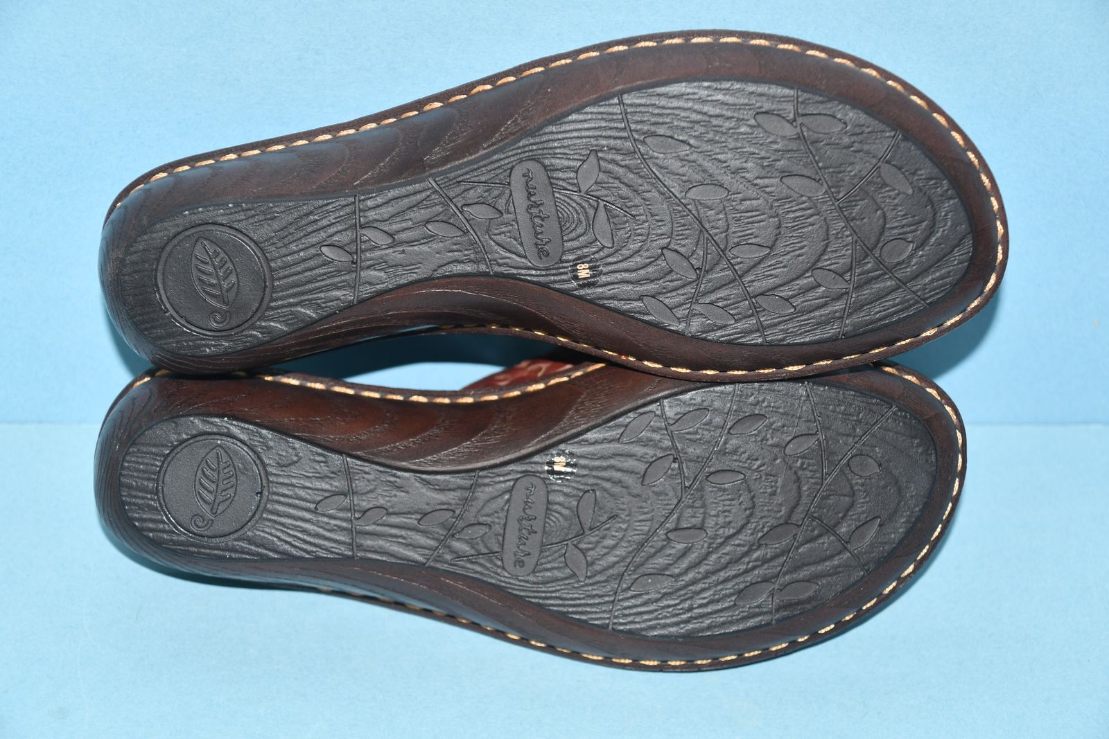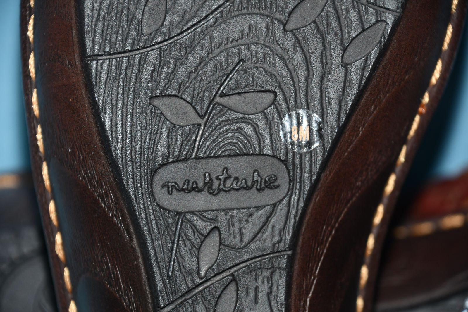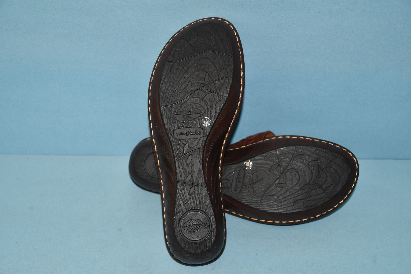 This pair of NEW NURTURE BROWN LEATHER SANDALS are SIZE 8M. They have ADJUSTABLE STRAPS. The heel height is about 1.5". They are CLEAN! They are NOT available to be tried on or returned. Our home is smoke free. Questions??? Please ask. We are located in Plain City. Cash only please.
