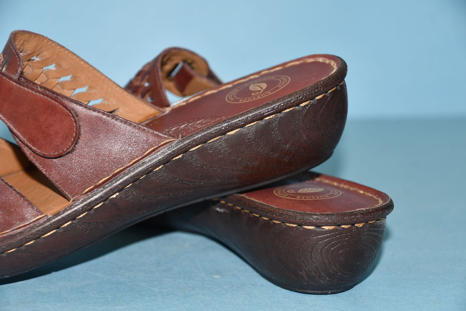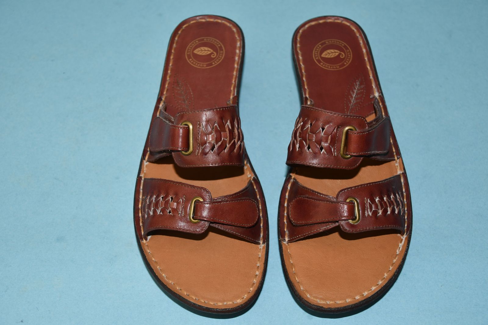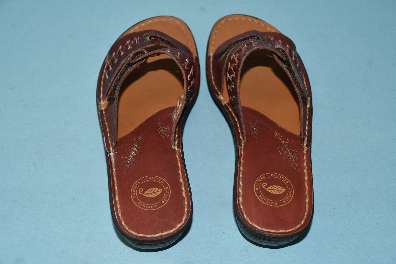 This pair of NEW NURTURE BROWN LEATHER SANDALS are SIZE 8M. They have ADJUSTABLE STRAPS. The heel height is about 1.5". They are CLEAN! They are NOT available to be tried on or returned. Our home is smoke free. Questions??? Please ask. We are located in Plain City. Cash only please.