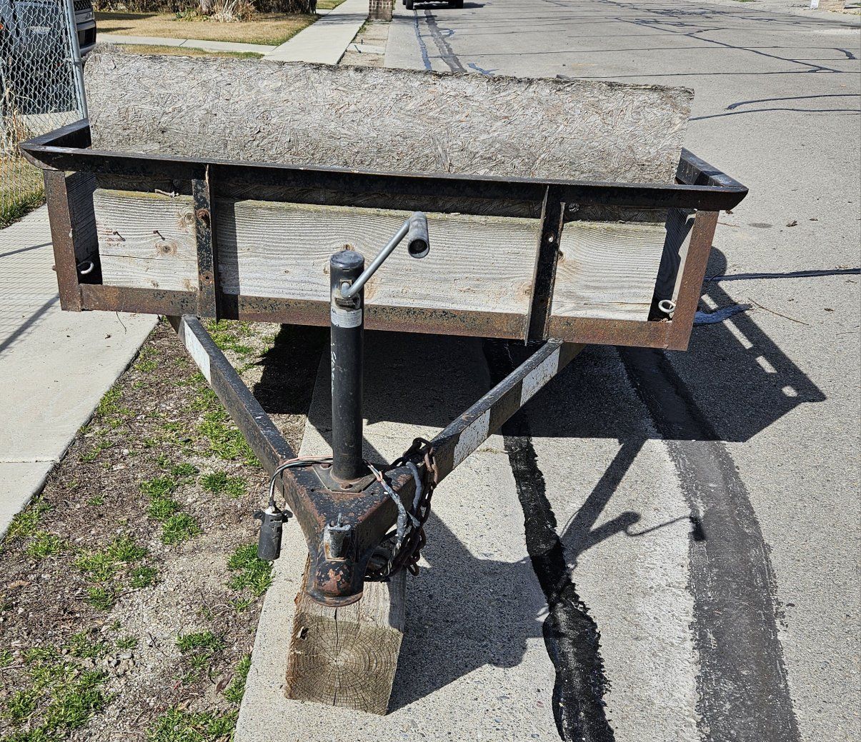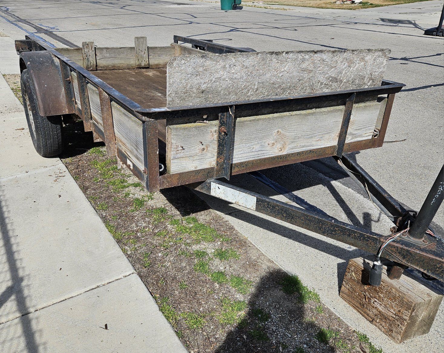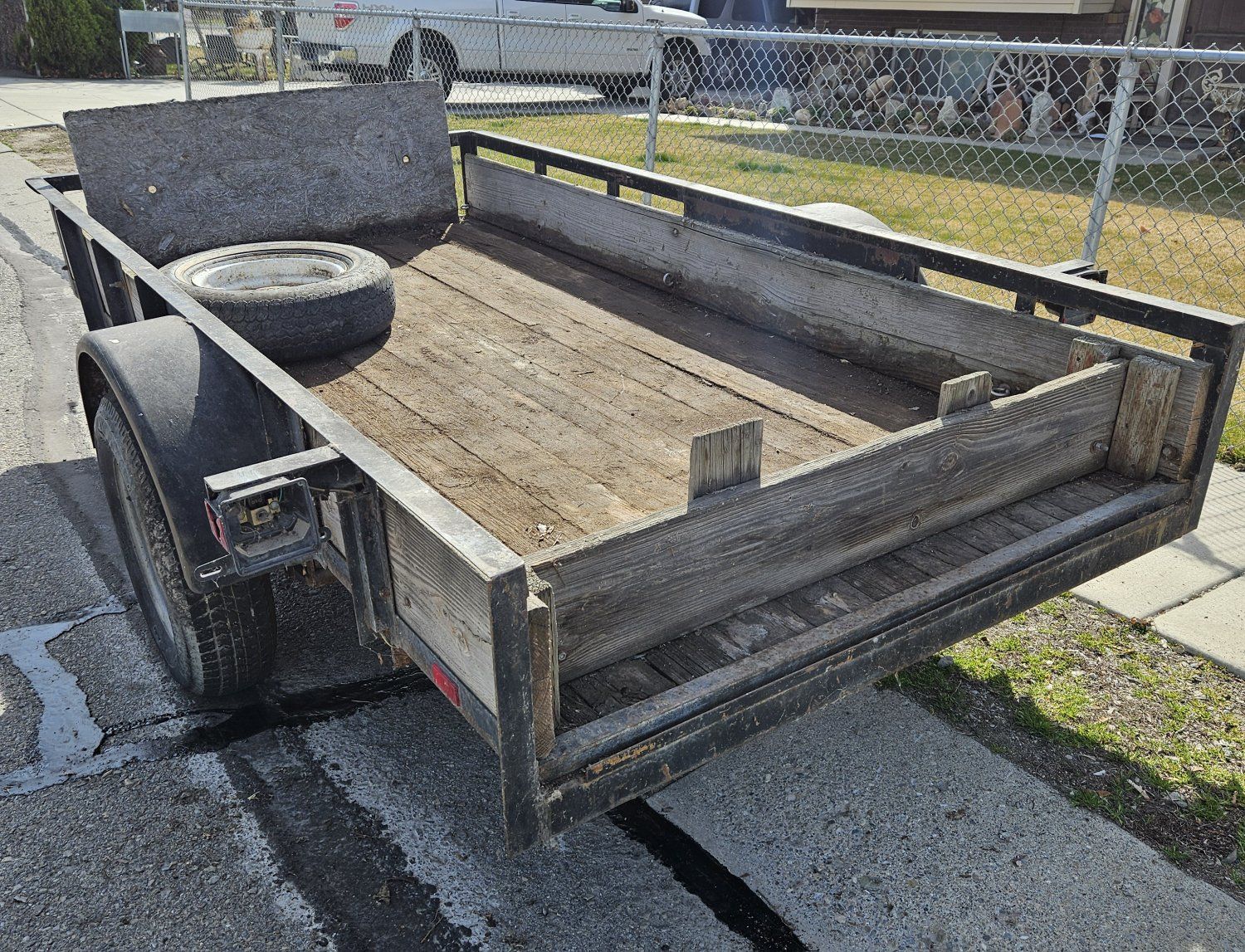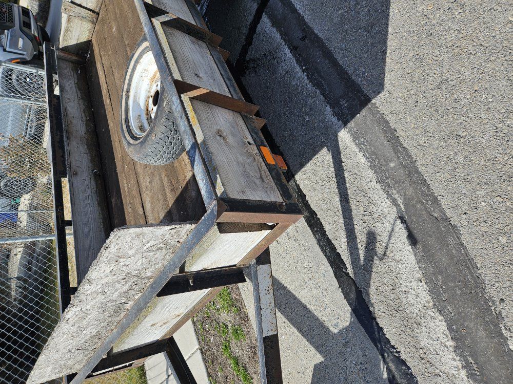 Utility Trailer 5' x10' cargo area. Trailer with tongue measures 13.5 feet long. comes with spare tire. Cash only please.