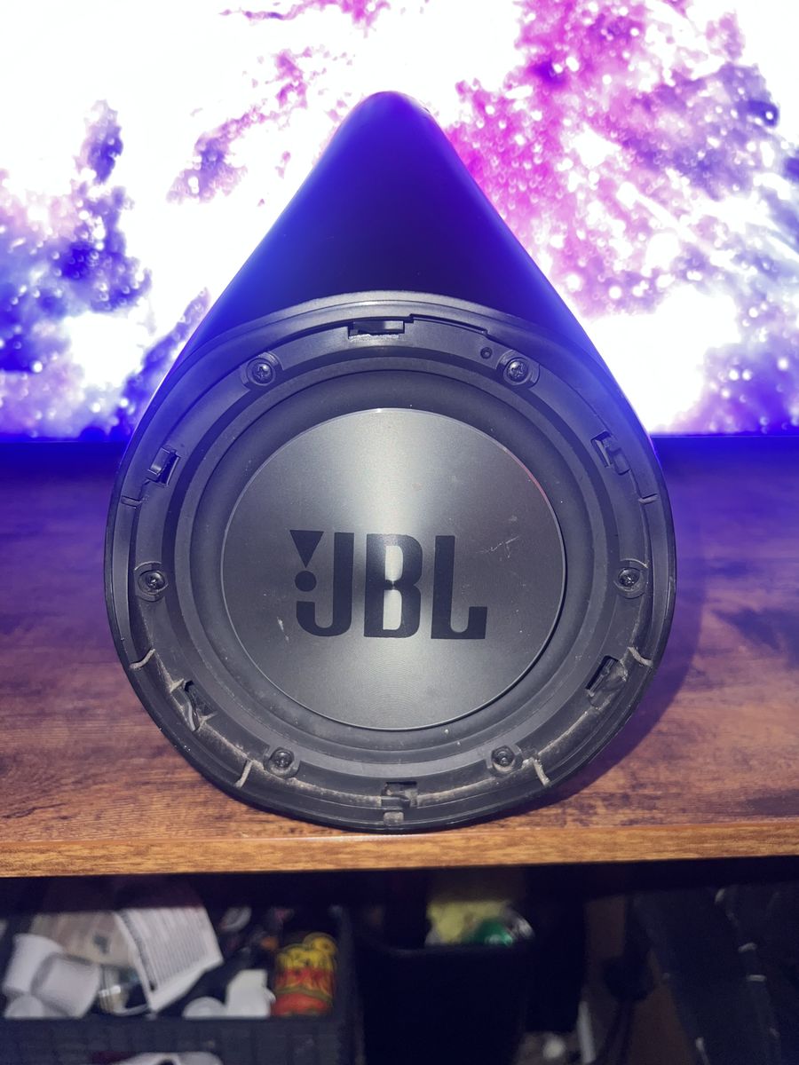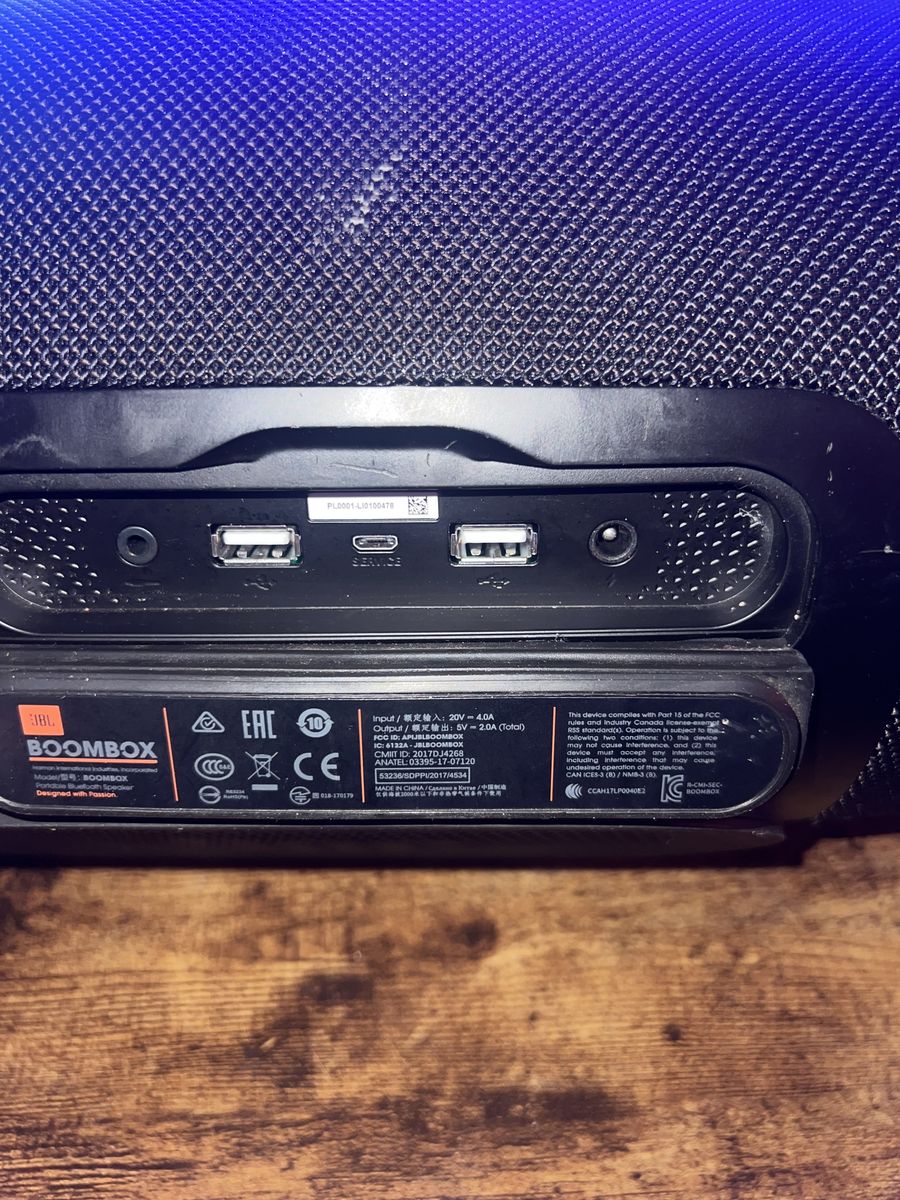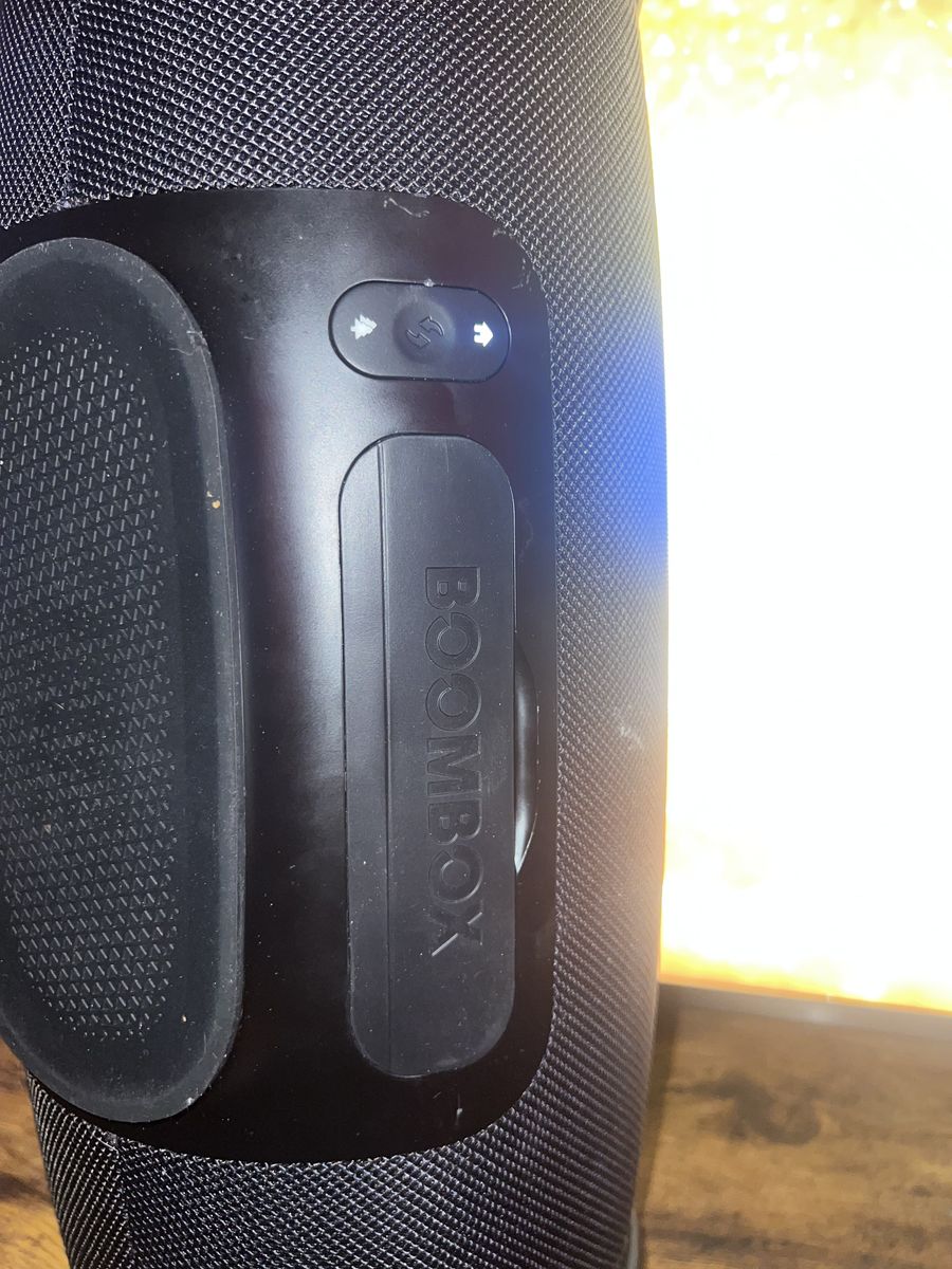 ApplePayJBL Boombox Is missing a trim piece from the right side of the speaker can be seen in photos. doesn't effect quality of sound at all other than that everything works will come with a after market charger. Asking $140 obo
