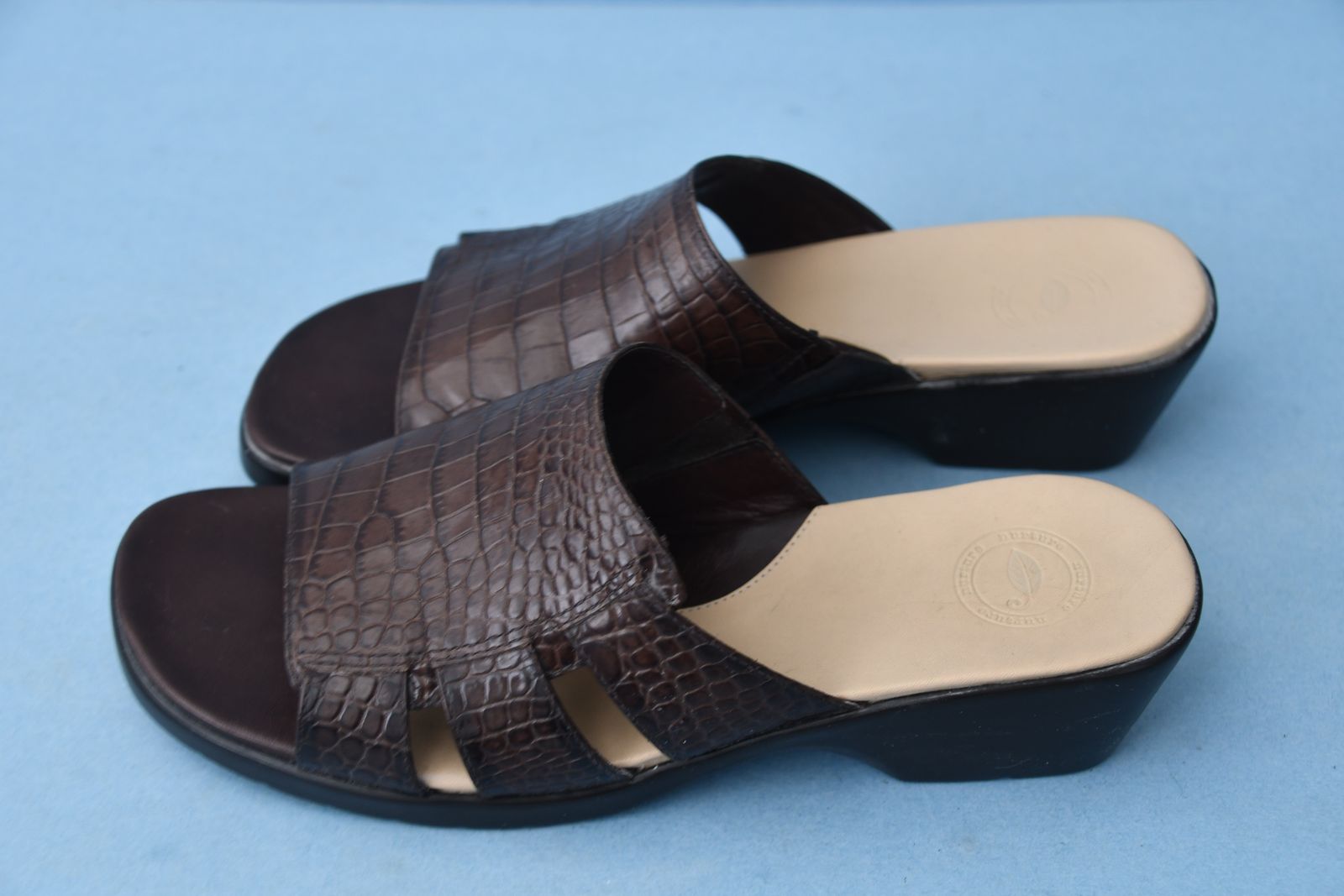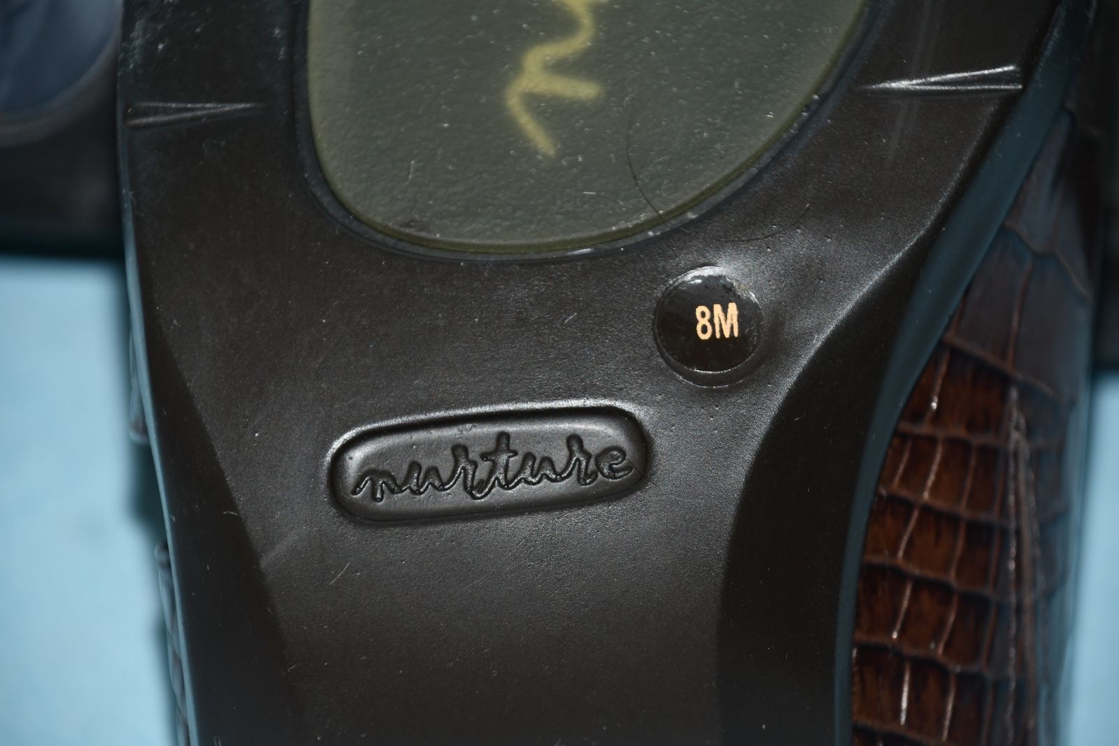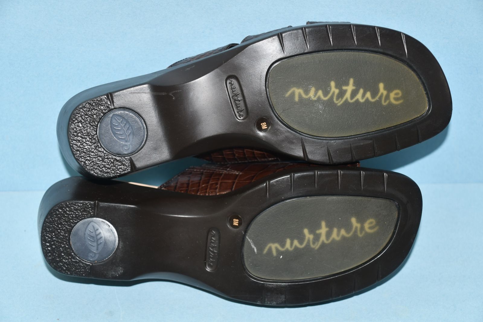 This pair of NEW NURTURE DARK BROWN LEATHER SANDALS are SIZE 8M. The heel height is about 1.75". They are CLEAN! They are NOT available to be tried on or returned. Our home is smoke free. Questions??? Please ask. We are located in Plain City. Cash only please.
