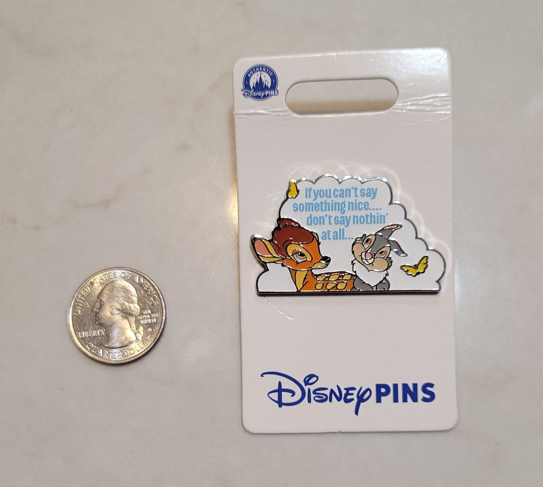 PayPalI am selling a new, never used Disney Trading Pin. This pin features Bambi and Thumper with the classic quote "If you can't say something nice, don't say nothin' at all." 2024 design, lots of good colors and a little sparkle too, this is such a fun pin I think!