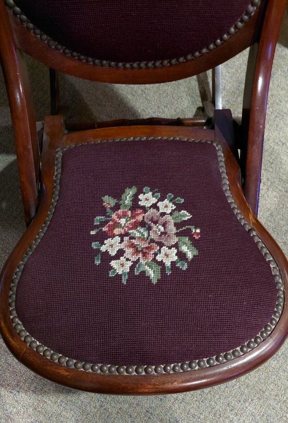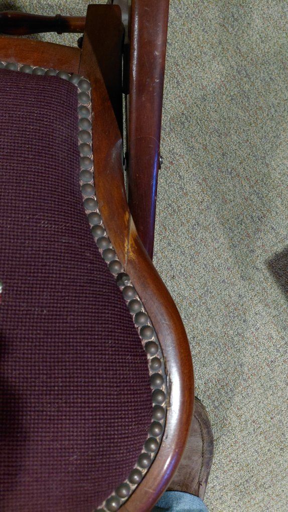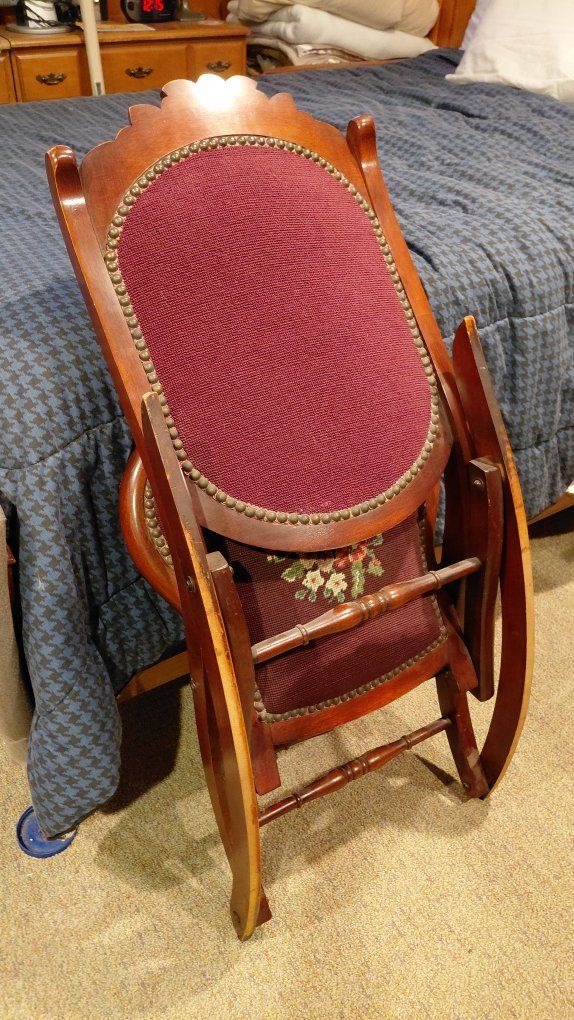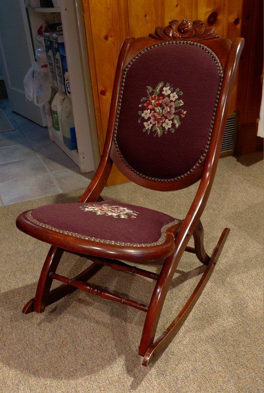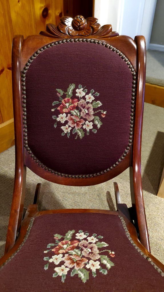 VenmoAntique needlepoint rocking chair in good condition, two seams in the wood on the outside edge of the seat popped and need to be reglued/repaired. Other than that it's in excellent condition and the needlepoint work is perfect