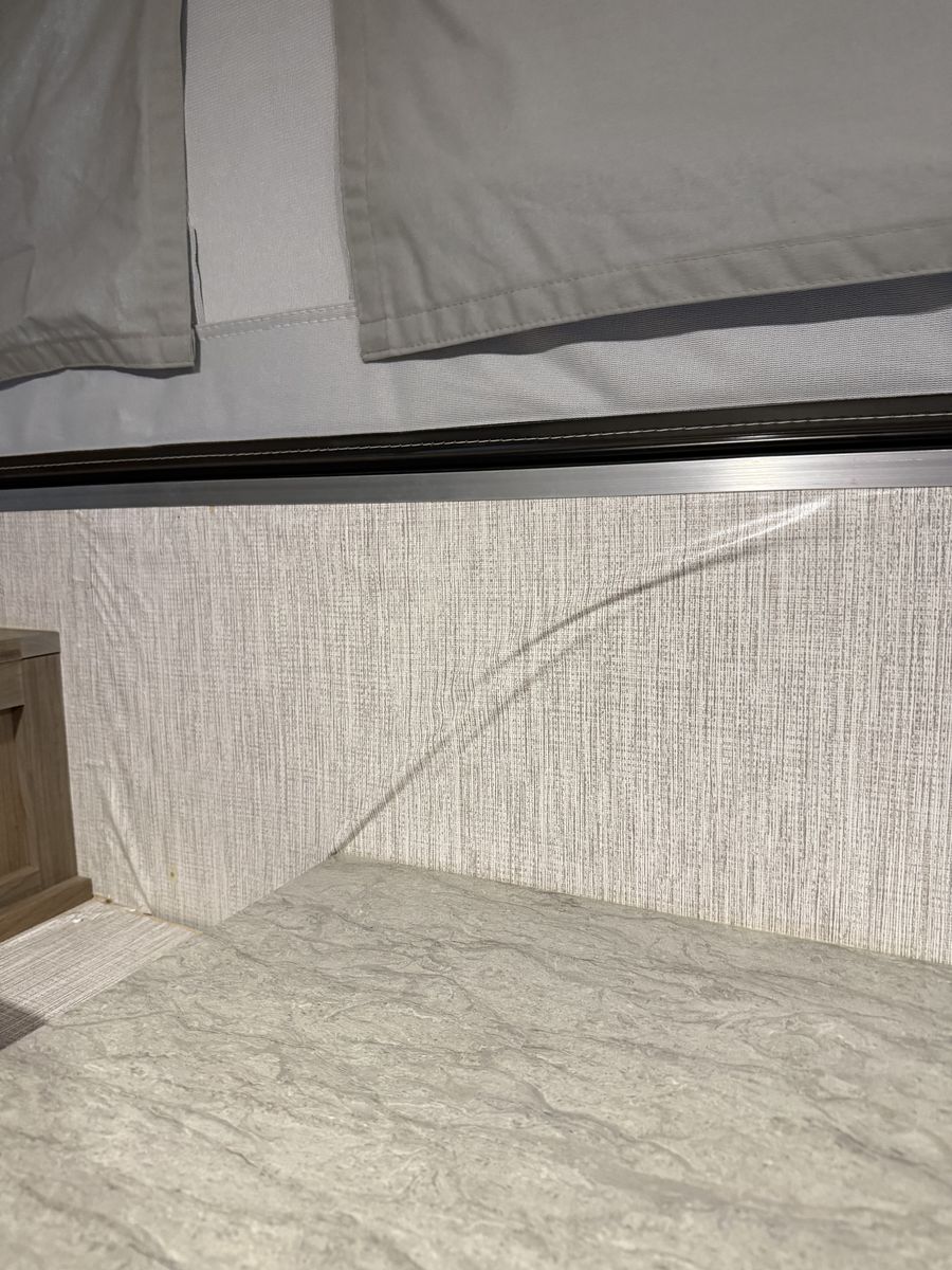 There are a few spots inside where the wallpaper glue has separated from the wall. Shouldn’t be too difficult to repair. Never bothered us enough to fix.