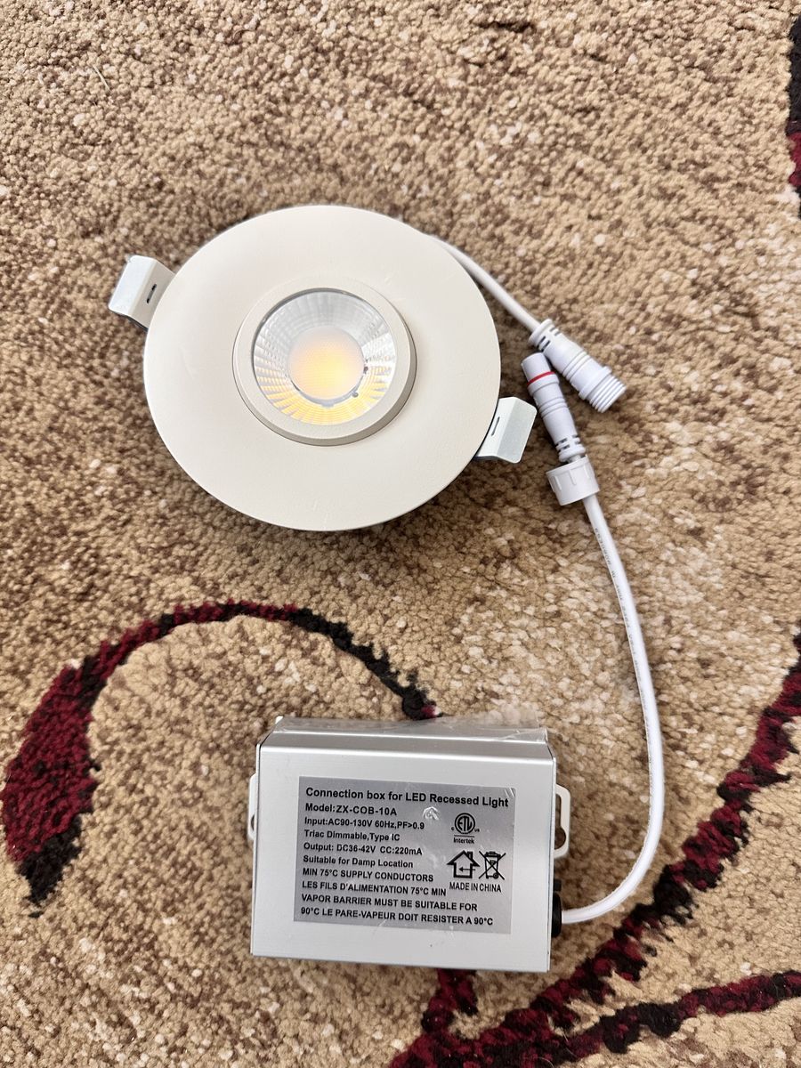 Details: • 3” LED recessed gimbal lights • Adjustable / directional • CCT selectable • Dimmable • Includes driver + quick-connect wiring • New / unused