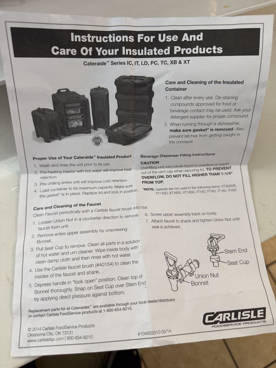 Carlisle FoodService Products Cateraide Insulated Beverage Dispenser with Handles for Catering, Events, Kitchens, And Restaurants, Plastic, 2.5 Gallons, Black