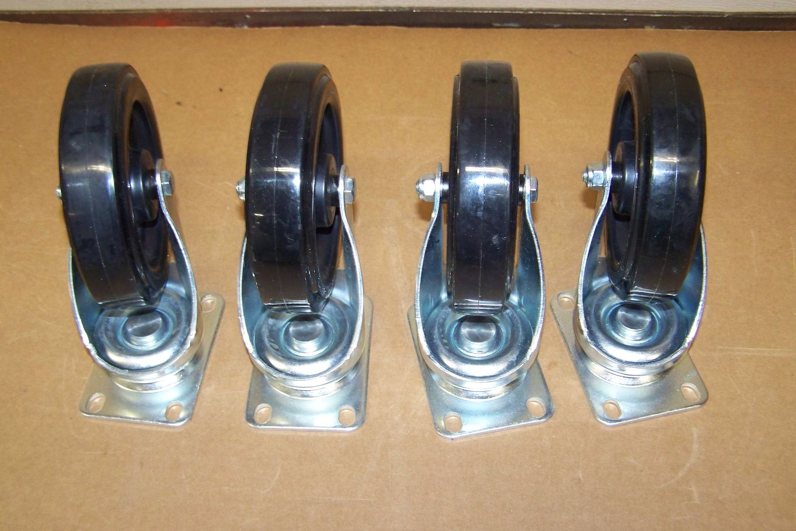 Have 4 new medium duty, swivel casters. They have hard plastic tires and ball bearings swivels. Selling all four for $35.00 Please call only.