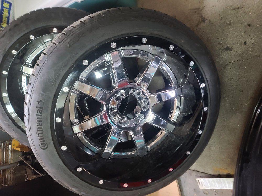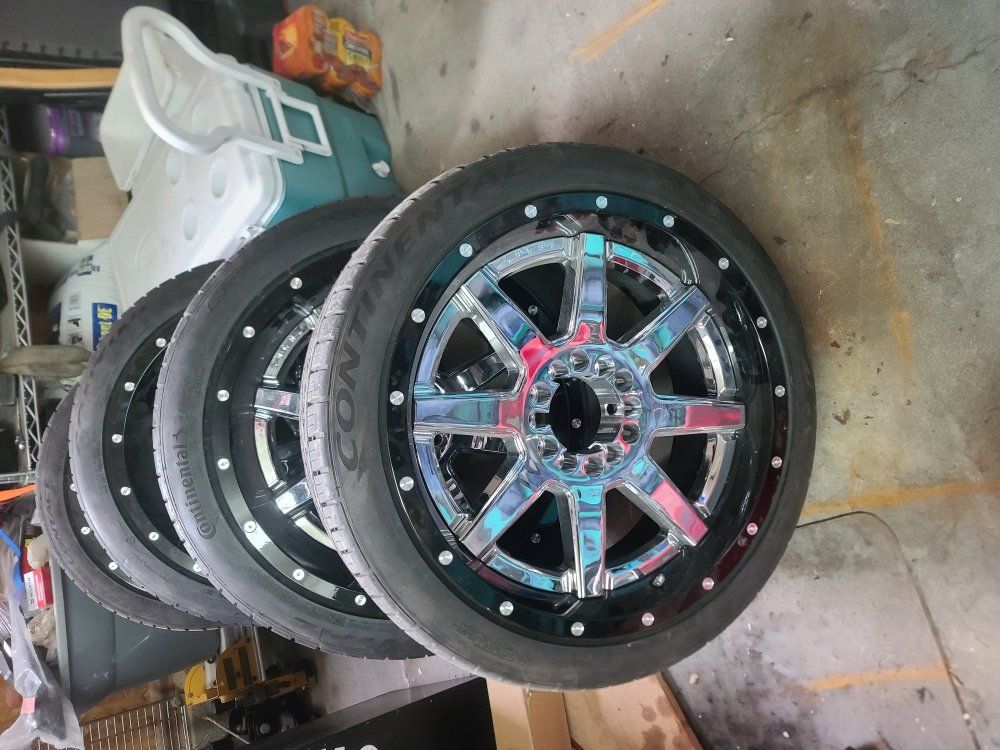 bought these to put on my chevy, ended up going a different route. bolt pattern is a universal 6x5.5. the back wheels are 12" wide and the front are 9". I paid just under $5000 when I bought them and now they literally have less than a hundred miles on them. want them gone $1,200 O.B.O txt Mike 8015971725