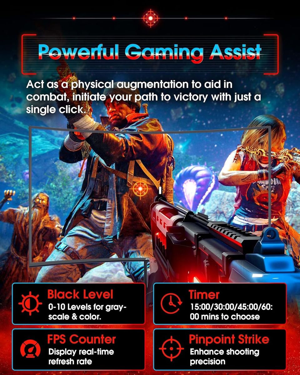 Prioritizes Gaming Performance: Up to 240Hz high refresh rate, more immersive 1500R Curvature, FreeSync, MPRT 1ms Response Time, Black Level adjustment(shadow booster), Game Modes Preset, Crosshair.