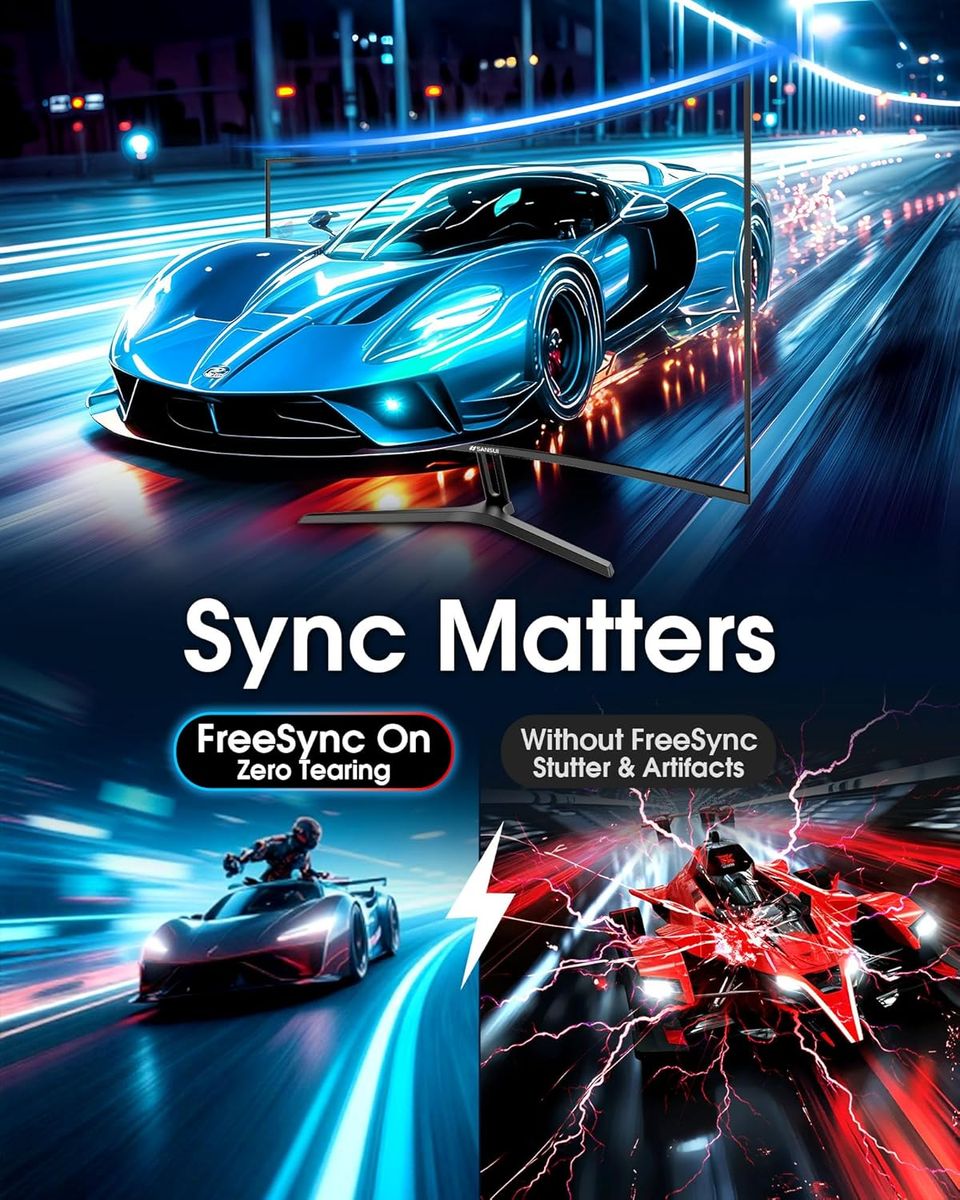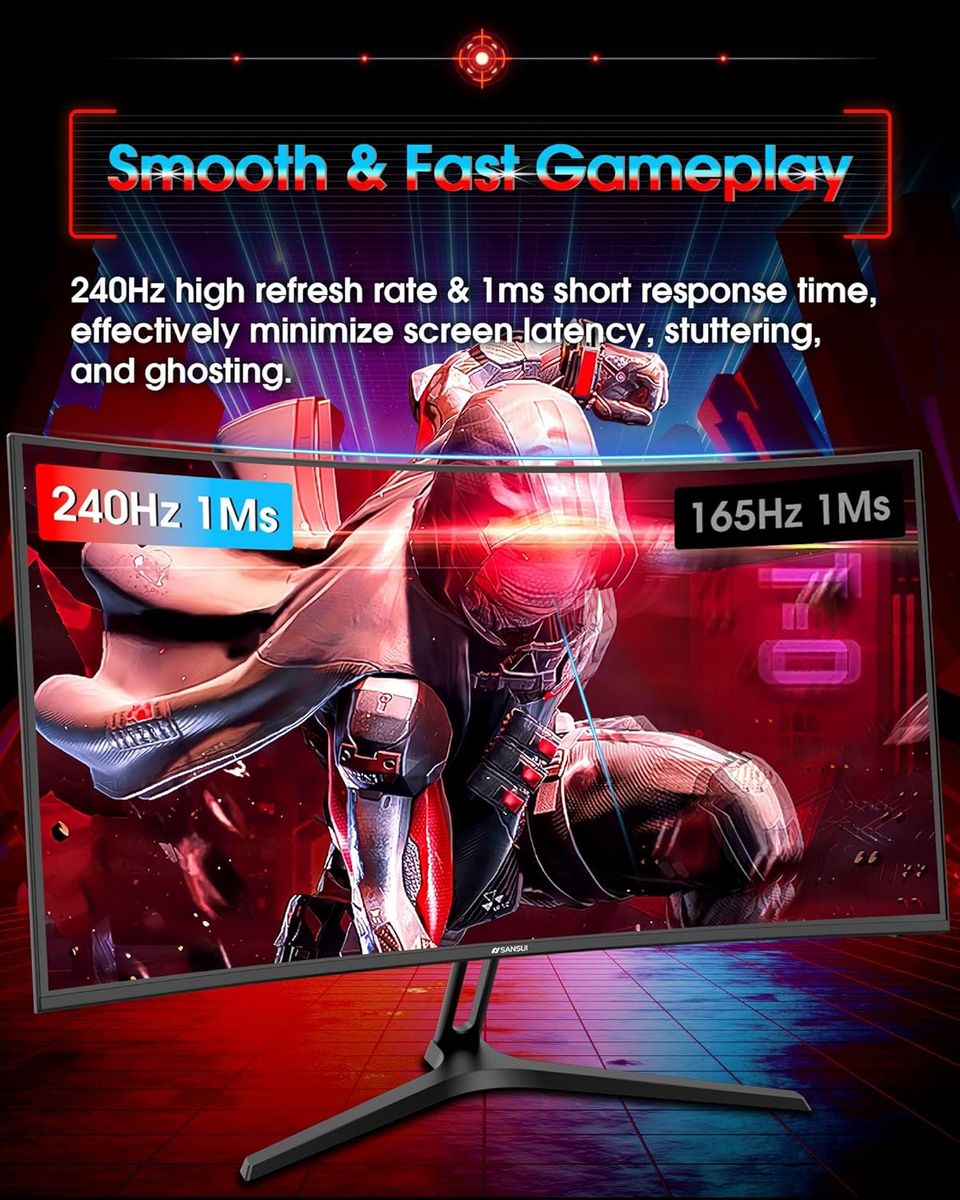 ApplePaySANSUI 27 Inch Curved 240Hz Gaming Monitor FHD 1080P, 1500R Curve Computer Monitor, 130% sRGB, 4000:1 Contrast, HDR, FreeSync, MPRT 1Ms, Low Blue Light, HDMI DP Ports, Metal Stand, DP Cable Incl.
