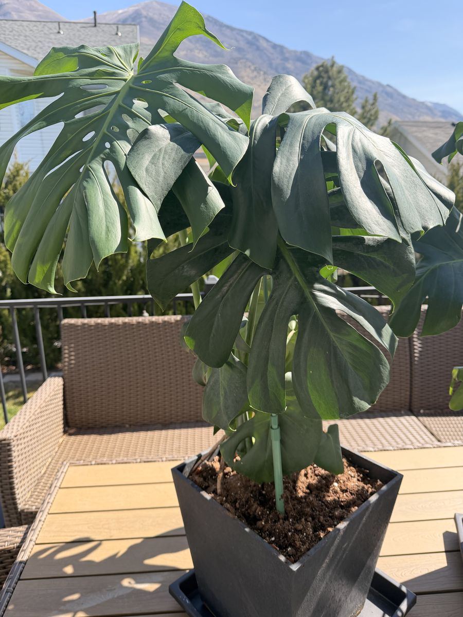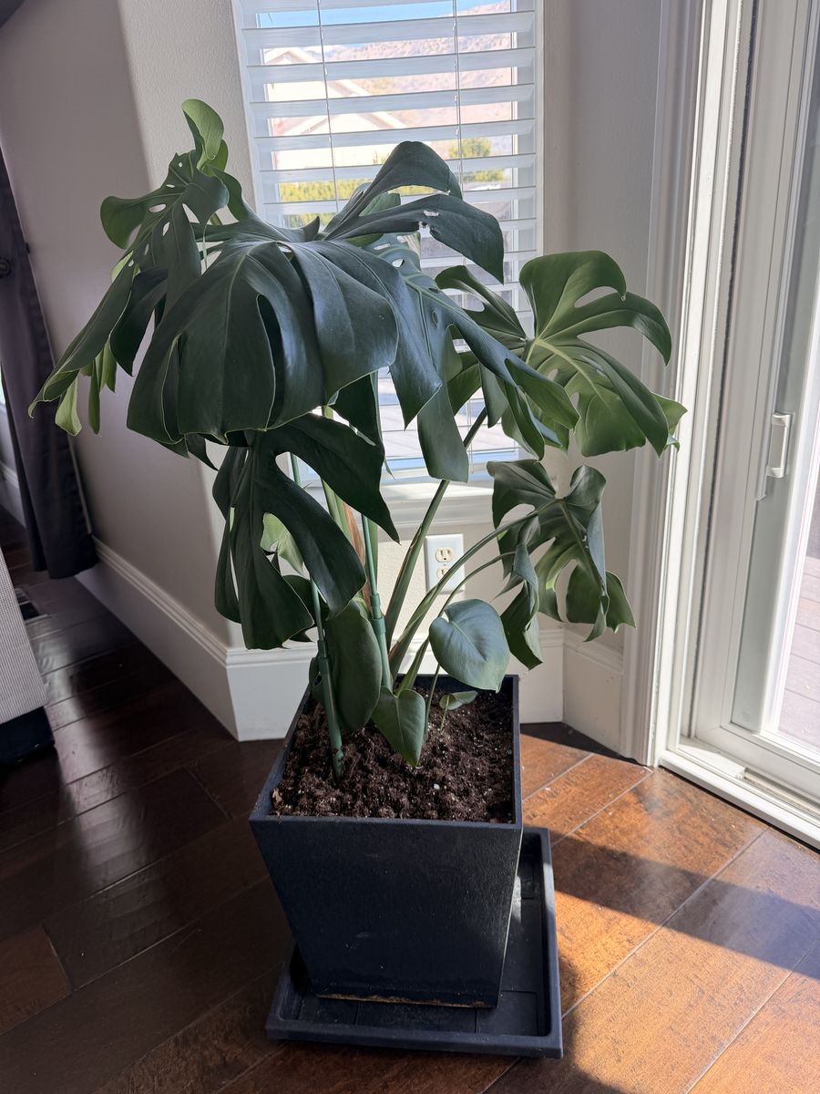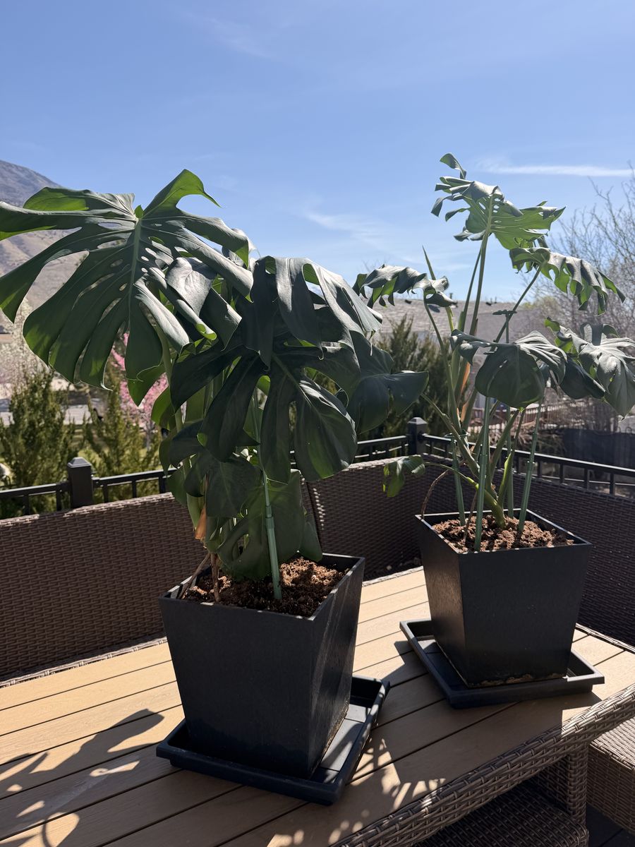 Beautiful set of 2 Monstera plants for sale. Both are mature plants with large dramatic leaves and are already potted in matching black planters. Perfect for home decor or filling a bright corner with greenery.