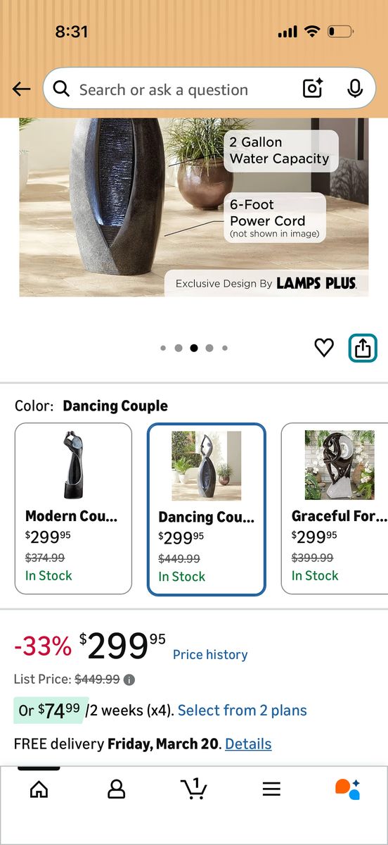 VenmoIt’s called the “Dancing Couple” Wonderful indoor decor with the soothing faint sound of water running. It also has a stunning light between the two faces with a slight bubble of water also between the couple.