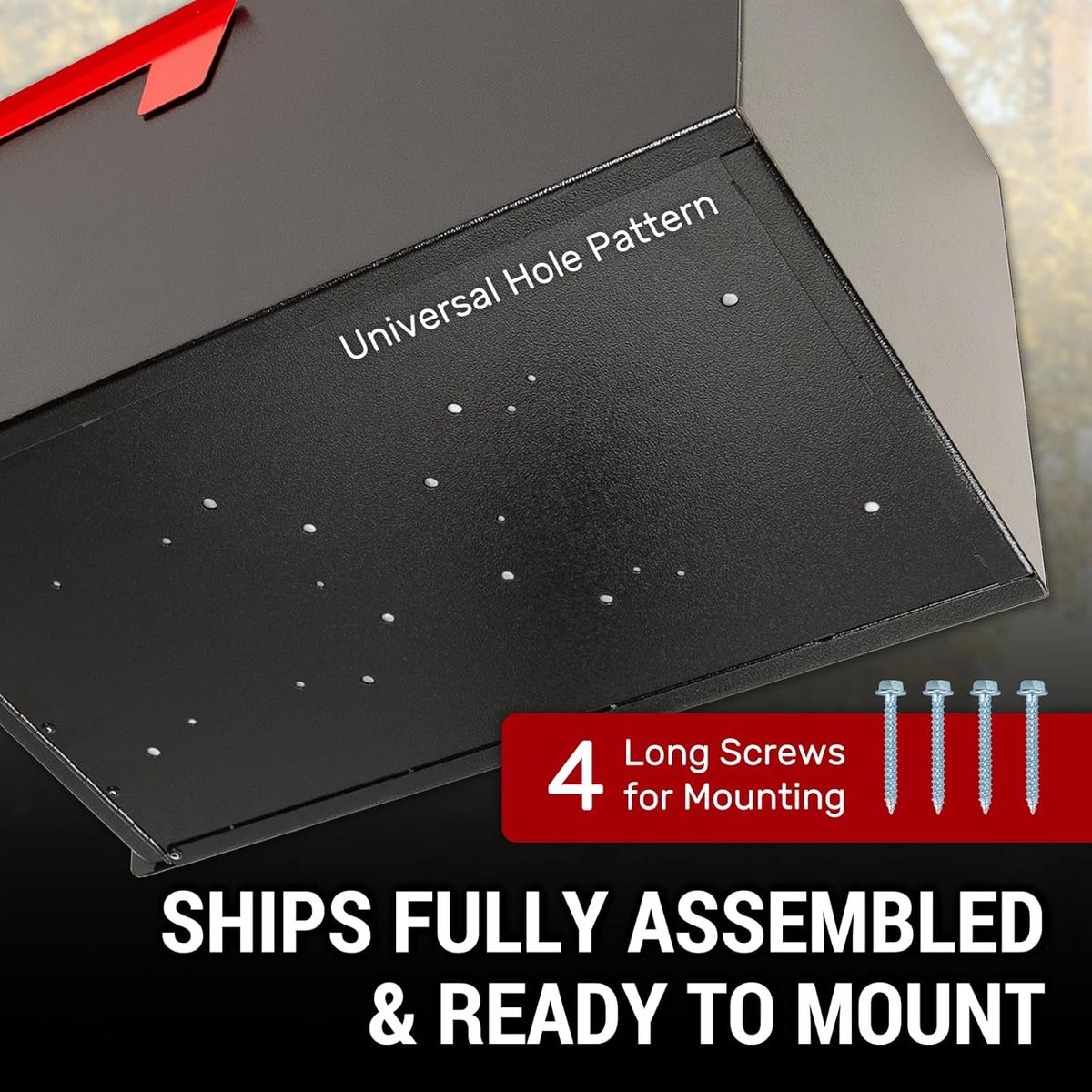 Easy InstallationFully assembled and ready to use; includes pre-drilled holes and screws for easy mounting on your post; Attach the heavy duty mailbox securely, and it's ready to protect your mail
