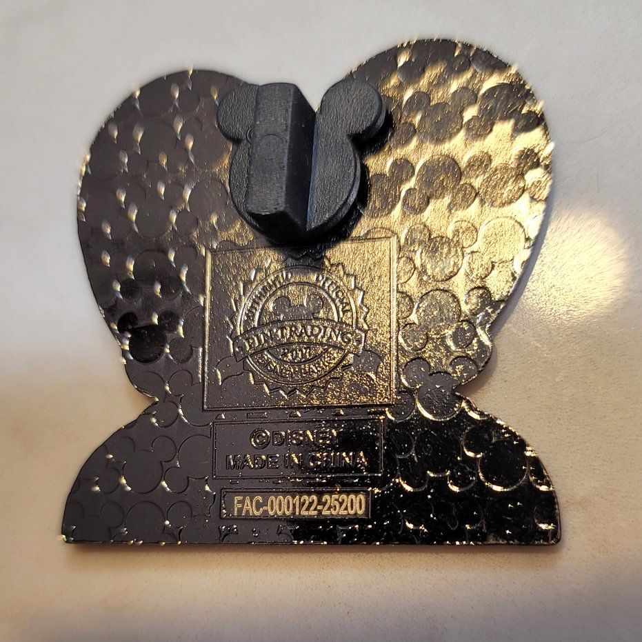 Purchased this year in Disneyland, and worn one day on my backpack. I do not have the cardboard tag for this, just the pin and Mickey back.