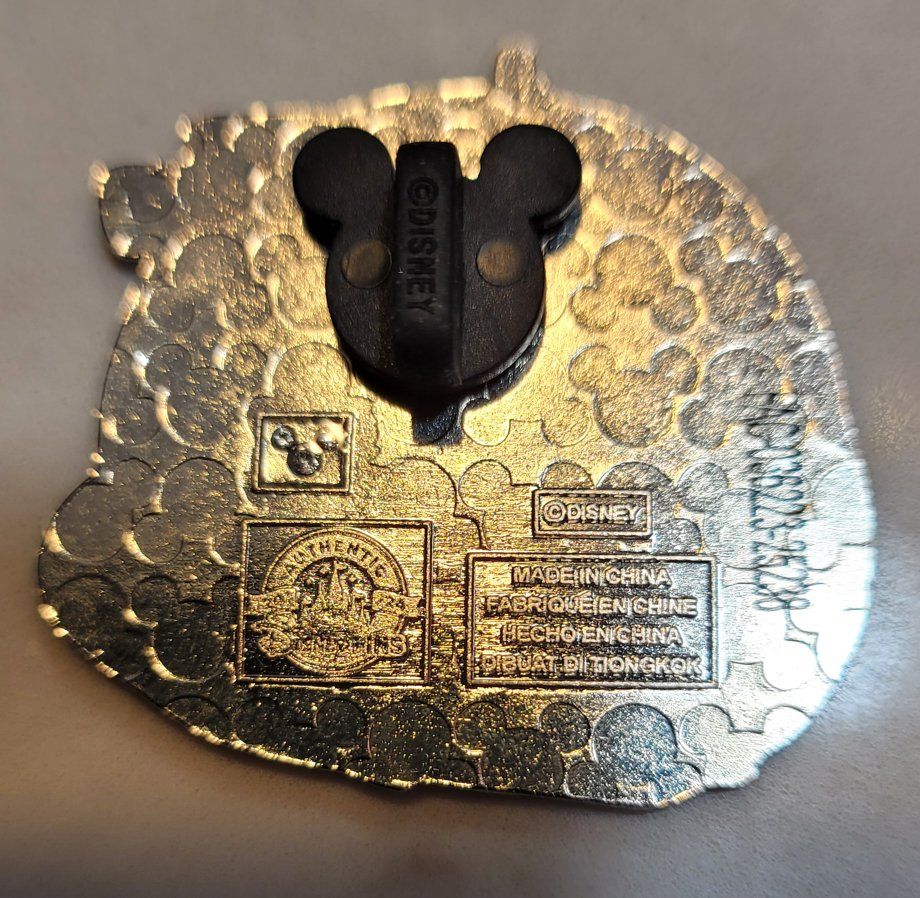 Purchased this year in Disneyland, and worn one day on my backpack. I do not have the cardboard tag for this, just the pin and Mickey back.