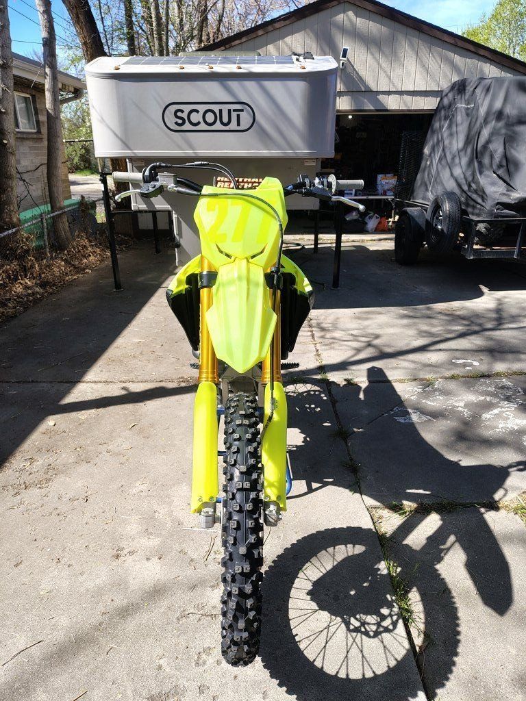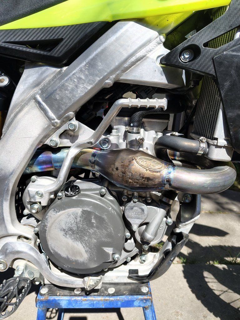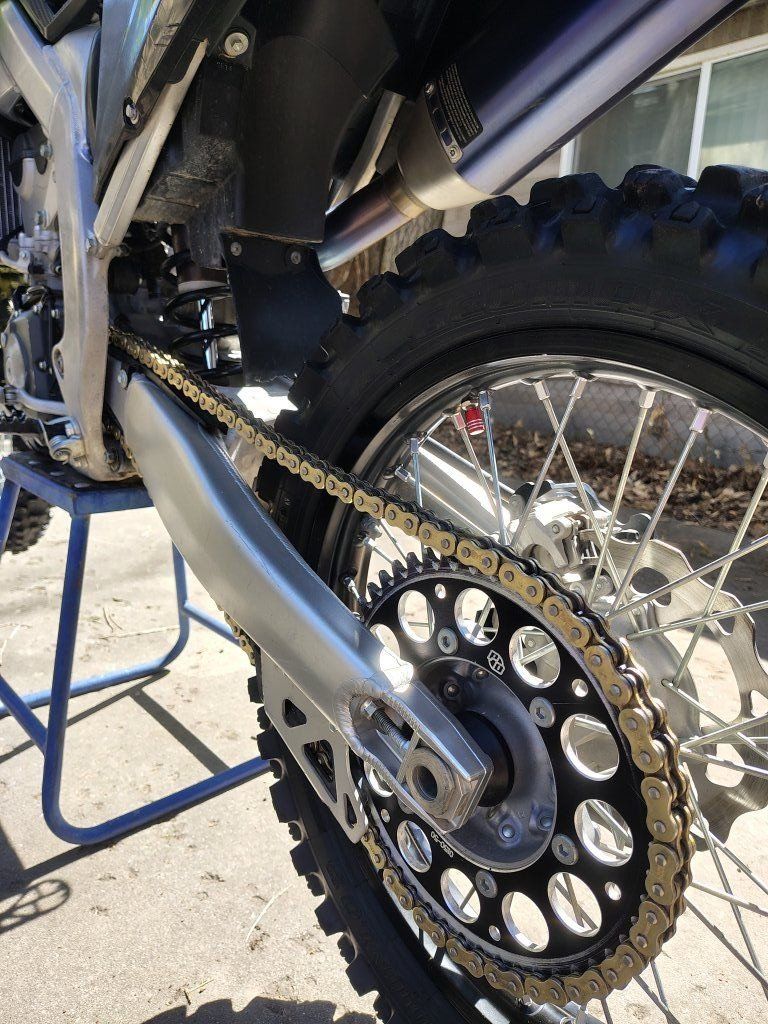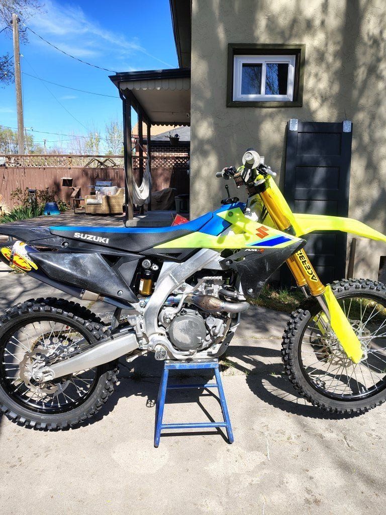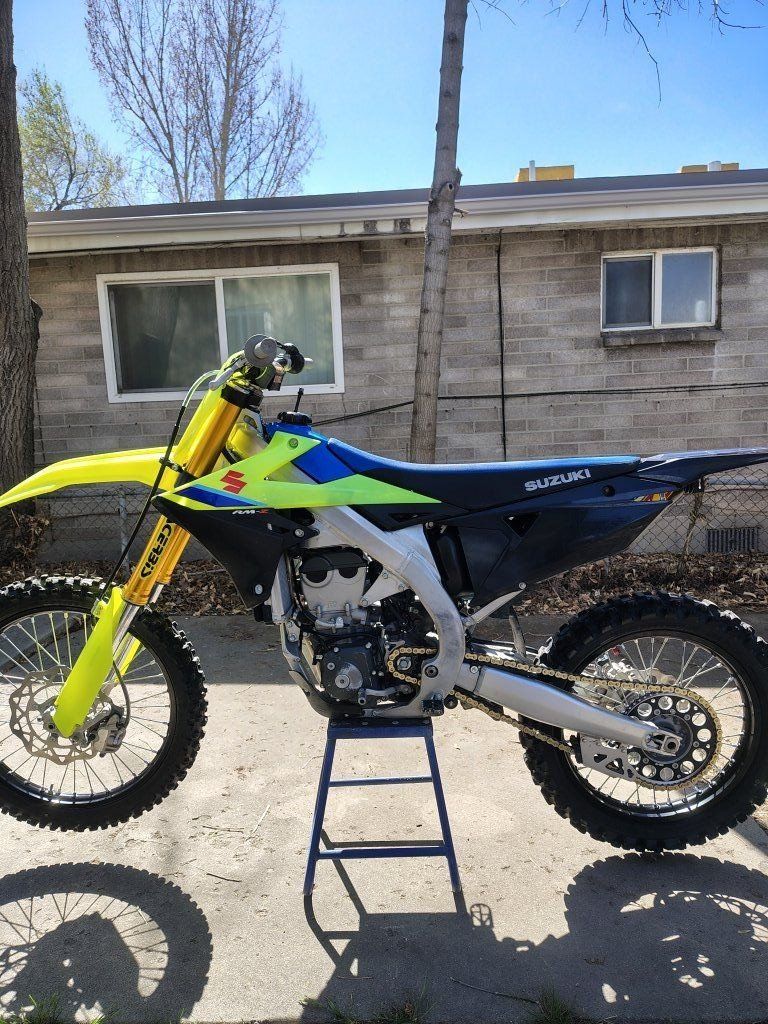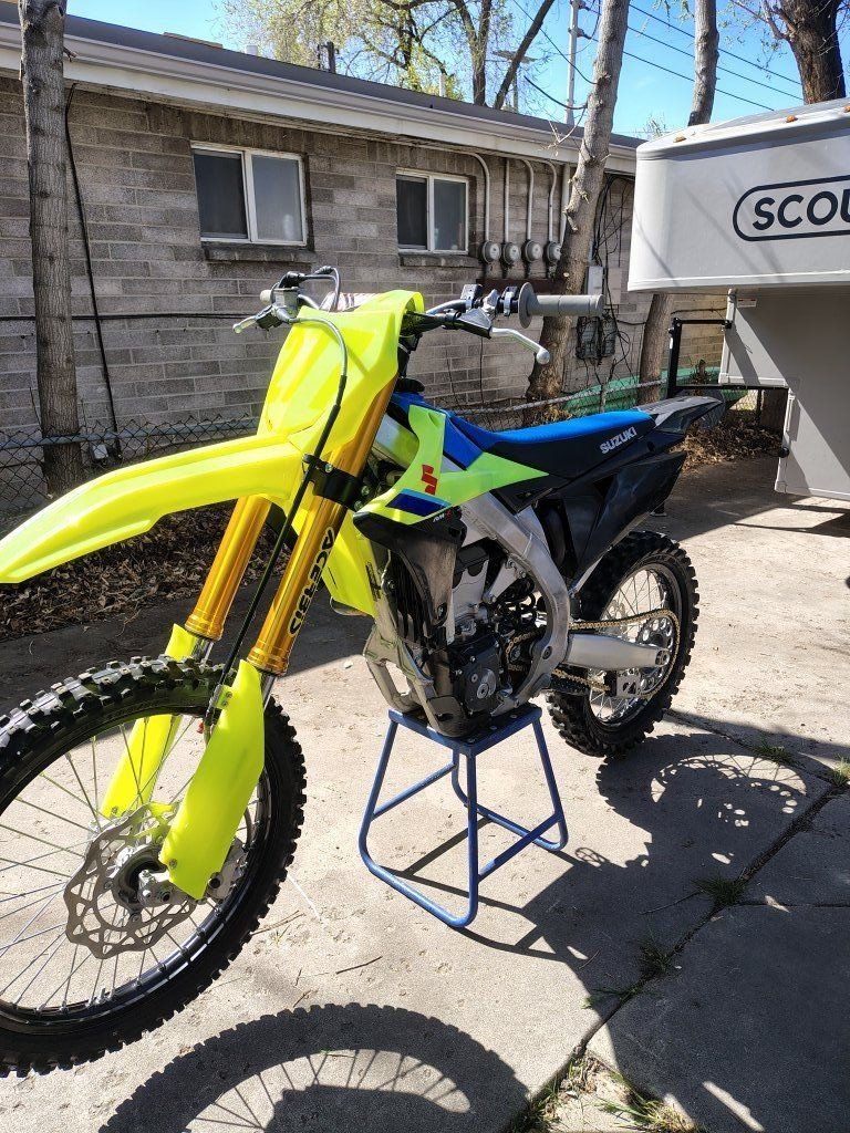 bought new, good bike, mainly trail and desert use, been to the track a few times, I just don't need a 450 anymore. put the full exhaust on and different grips, stock bike, fresh fork seals and maintenance. comes with a paddle tire.