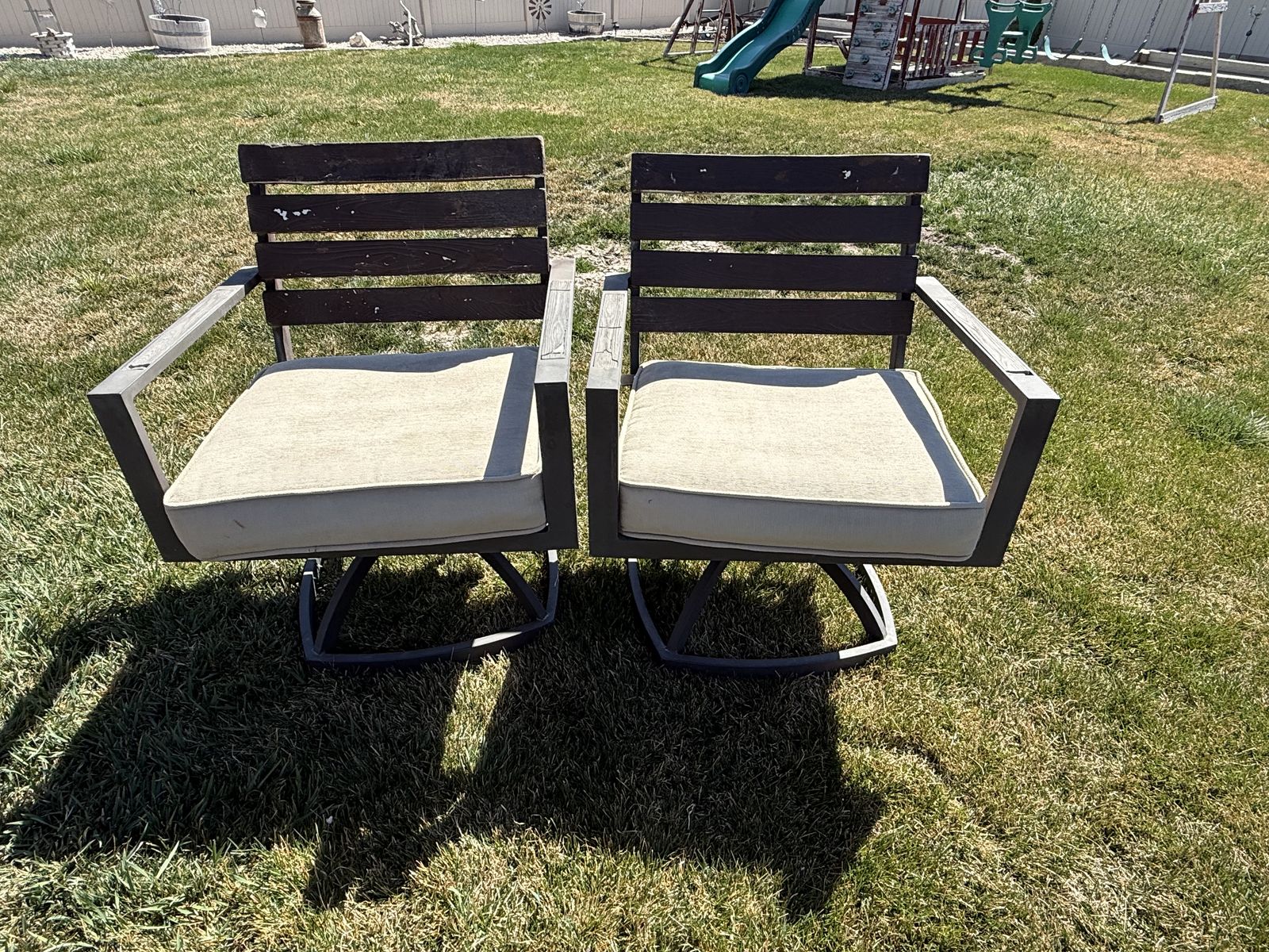 VenmoWicker furniture, 2 swivel chairs and propane fire pit.