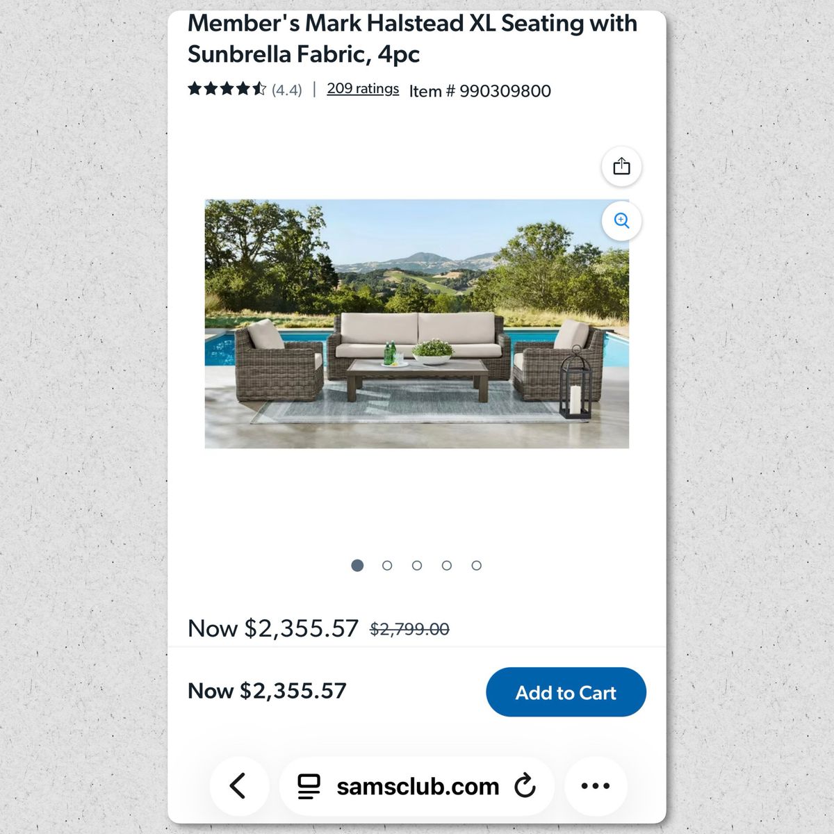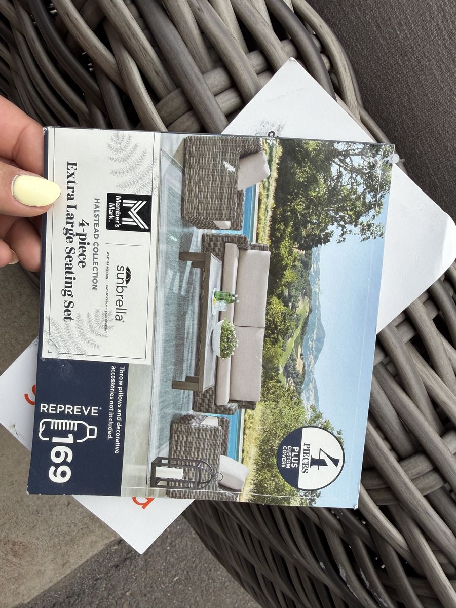 The Member's Mark Halstead 4-Piece Seating Set is a game-changer in the casual living category. Its oversized silhouette will transform your outdoor living space into a luxurious retreat that will be the talk of the neighborhood. The set comprises two oversized lounge chairs, a four-person sofa, a coffee table with three large-format mosaic porcelain tiles, and four outdoor storage covers.