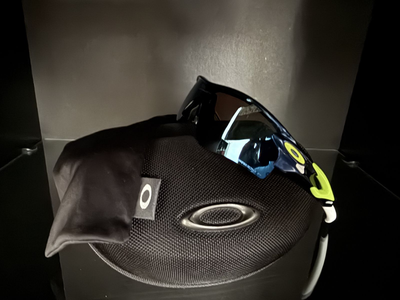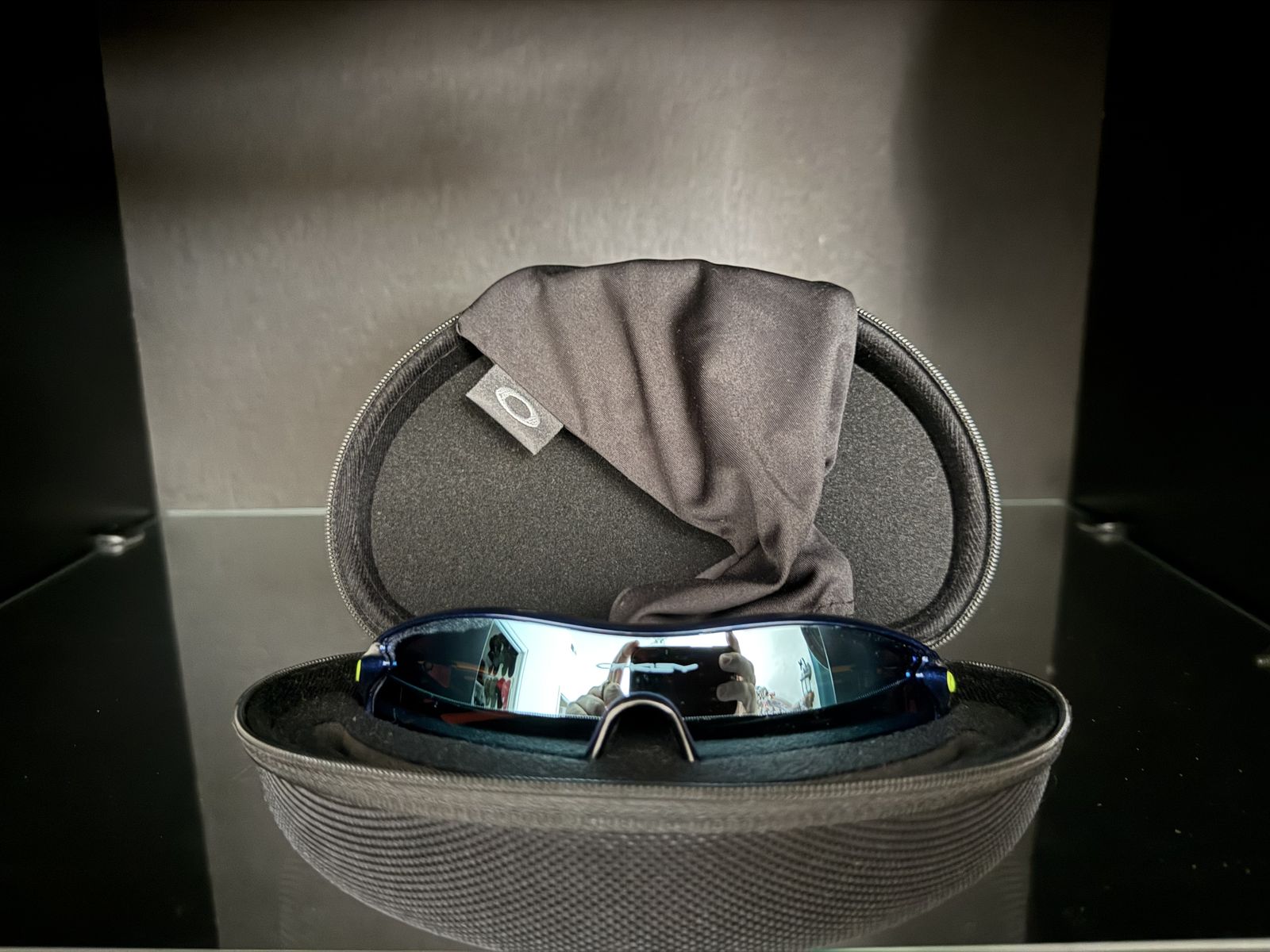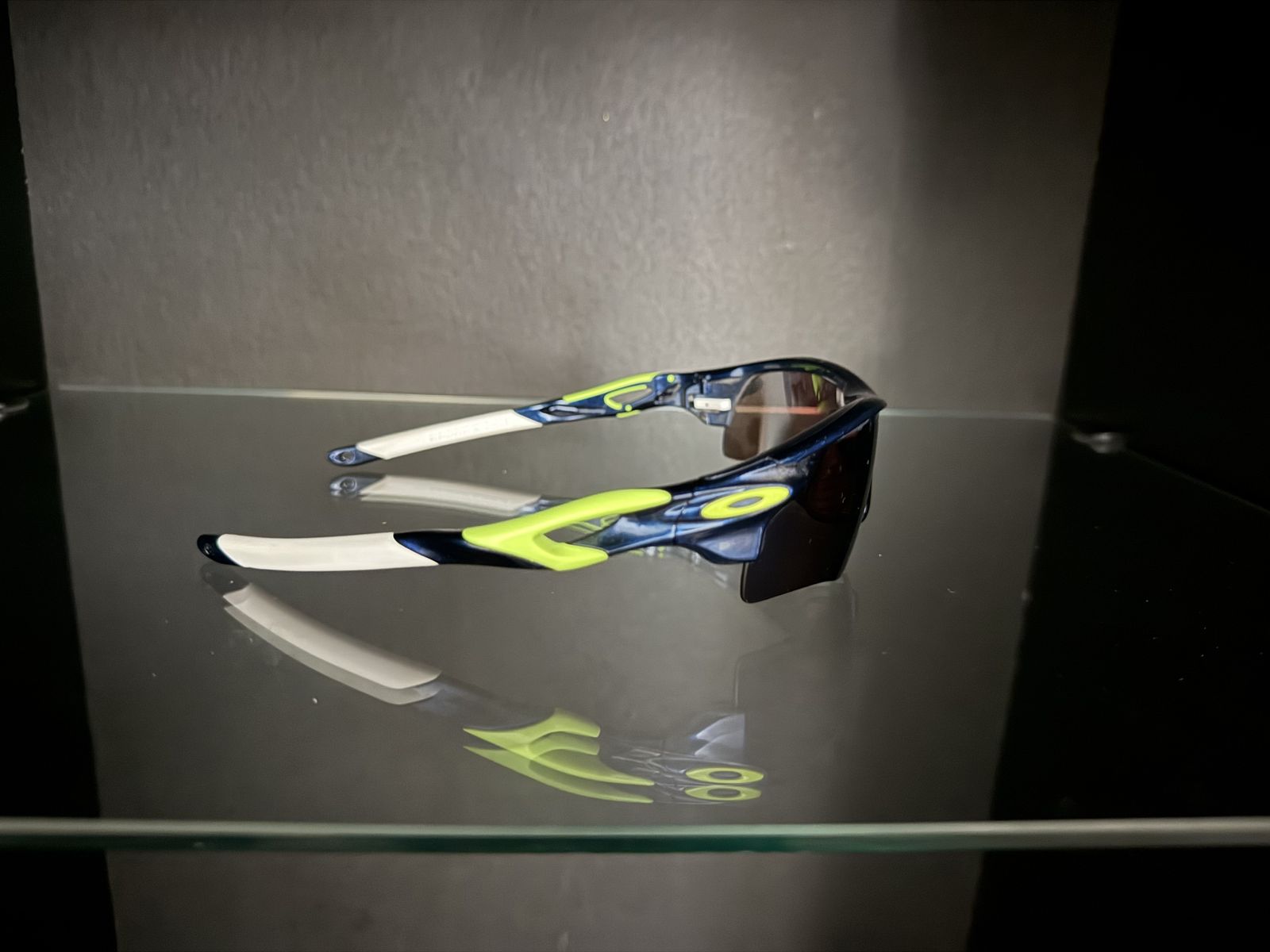 These are a custom built pair of Oakley Radarlock sunglasses with a metallic navy blue frame, retina burn bands, retina burn icons, white unobtanium ear socks, and a Prizm Deep Water Polarized lens. They come with the displayed Radar specific Oakley zipper case and a black Oakley microfiber bag. These bad boys retail for $334 on the Oakley website right now. I had the guys at the Lehi Oakley Vault build them for me about 4 years ago, so again these are real Oakley Radarlocks. Asking $200 which is a pretty solid deal since these haven't been worn.