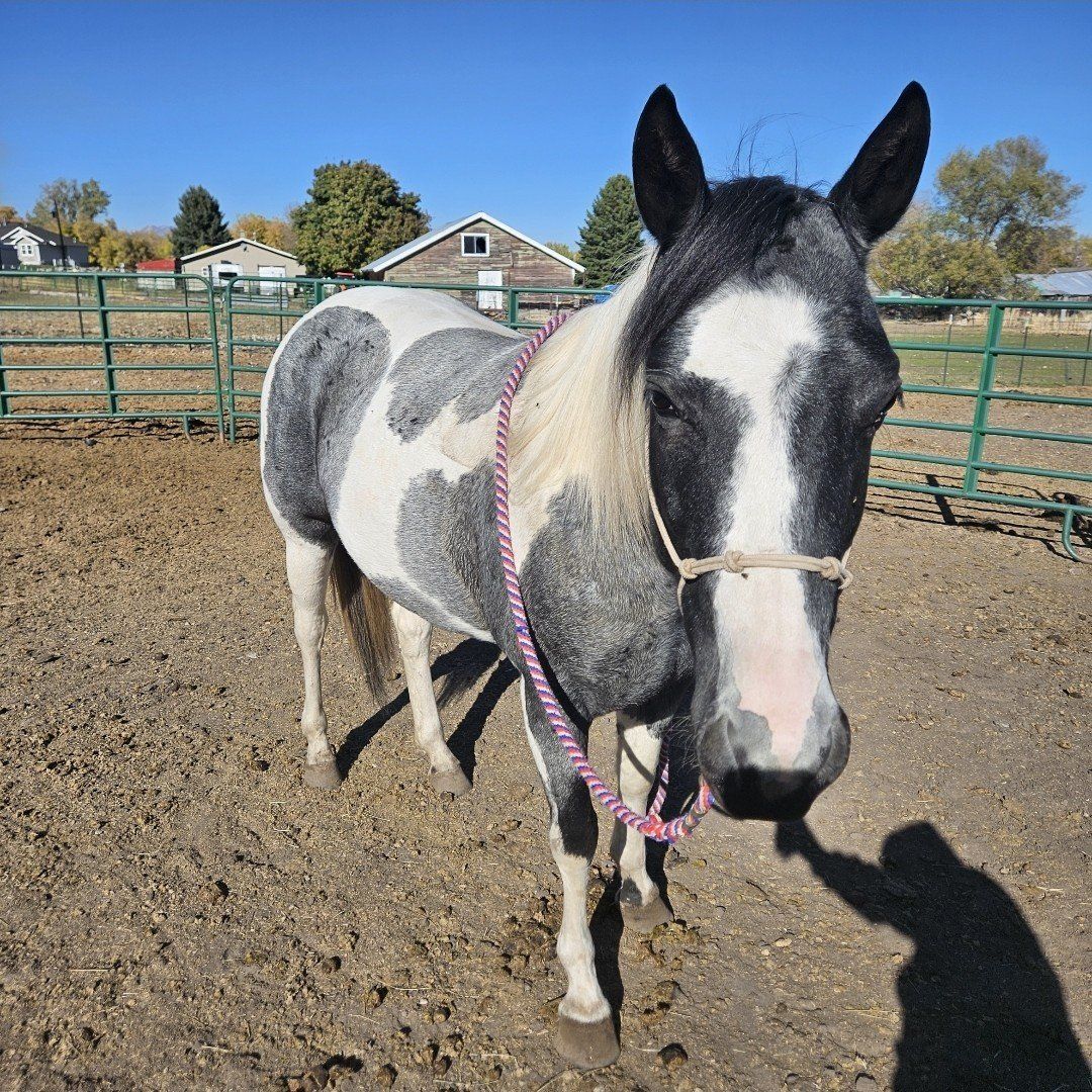 This here is Ruka. She is on the shorter side and probably around 14.2 hands. I have not taped her. This mare is green broke and knows the basics. She has a very smooth walk, trot, and lope. Will pick up both leads, soft in the bit and responds great to leg pressure. Needs an advanced rider or intermediate rider working with a trainer to complete her training. She will get out and move. Has a good stop and back. This girl is very much an in your pocket type of mare. Will follow us around the pasture looking for neck scratches. Will greet you at the gate to be caught. Just generally loves people. She has great ground manners, stands tied, loads up and backs out of the trailer, and stands for the farrier. Has never had shoes as she has solid hooves and never needed them. Still spooky with normal things like plastic bags. She does not bolt or buck under saddle aside from a few crow hops when she hasn't been rode for a while.