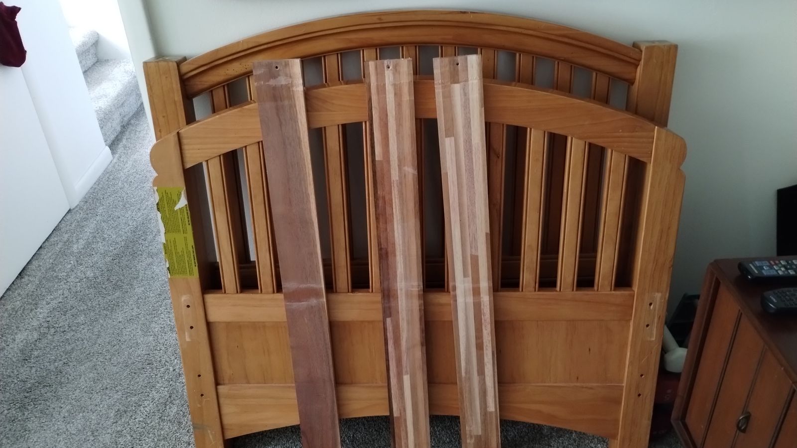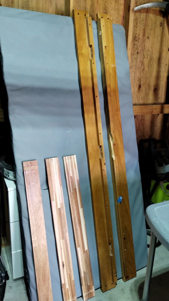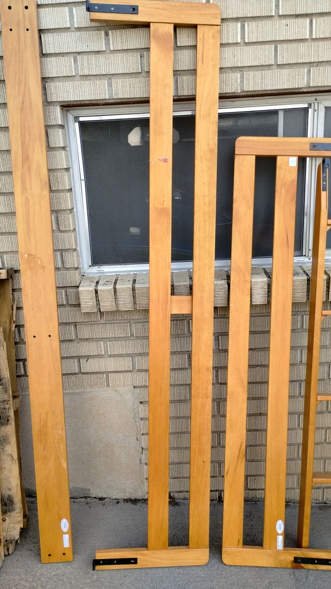 Each separate bed has a headboard, foot board, rails, three cross slates and bunk board. One of the rails does have a chuck of wood mising from where a slat sets, but still enough to hold the slat in place (picture 10). Also included are two bed rails for the top bunk and ladder. All hardware accounted for. Original assembly instruction booklet included.