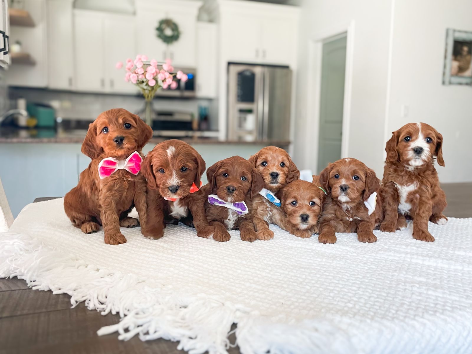 ApplePayArtisan Doodles, Beau, is a Multigen Toy Cavapoo with a gorgeous apricot coat with white markings, He has amazing structure and makes the cutest teddy bear faces. Just look at his face! His puppies are so beautiful! We just acquired him from another program, and have used him before he became ours. He's amazing, you won't find another Cavavpoo out there like him!
