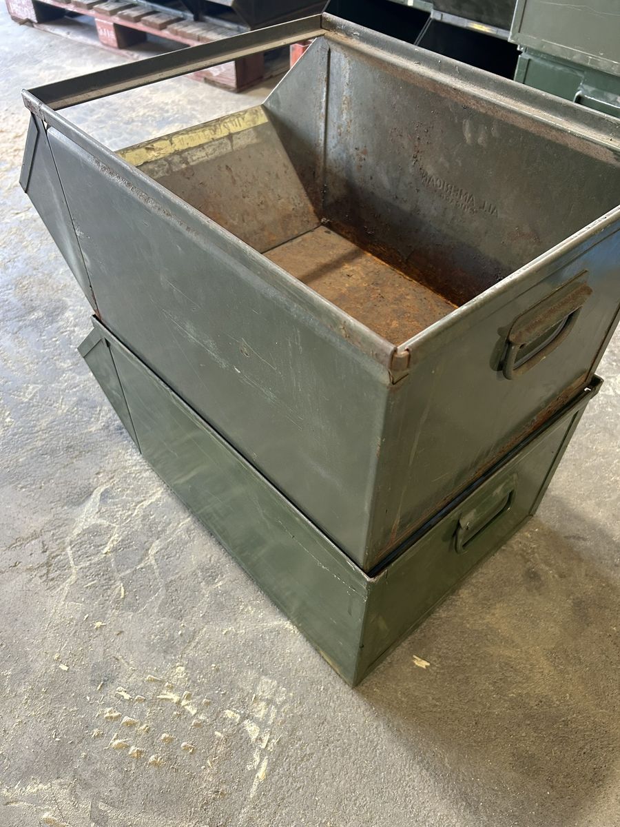 I have 13 Bin $2O each or all for $260. organize fasteners, fittings, and small components with the rugged Stackbin® No. 5 metal hopper bin. Built from all-welded, heavy-gauge steel and finished in durable baked enamel, this industrial-grade bin delivers long-lasting performance in demanding environments. The smooth interior and full-flow hopper front make it easy to see and grab parts quickly—