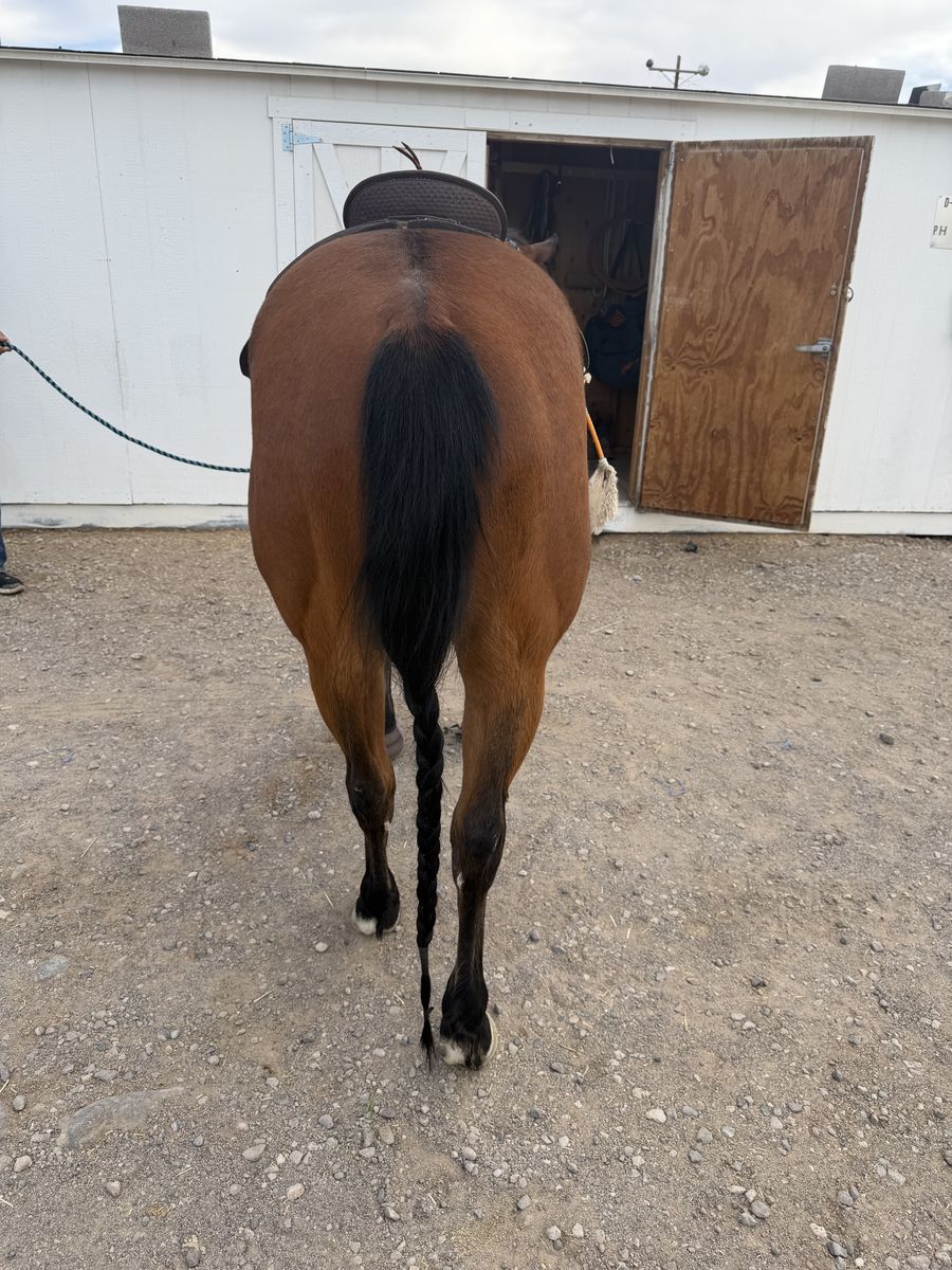 " Big Mac " is a started heel horse standing at 14.3 , has had lots of slow work on the hot heels & live steers. He is broke good , will stop and turn around. Quick footed and can run , he's not far away from being able to haul to jackpots , really good in the box , and will drag it when you rope . He's not a beginner horse or a kids horse , he's not mean but he's really catty and quick.