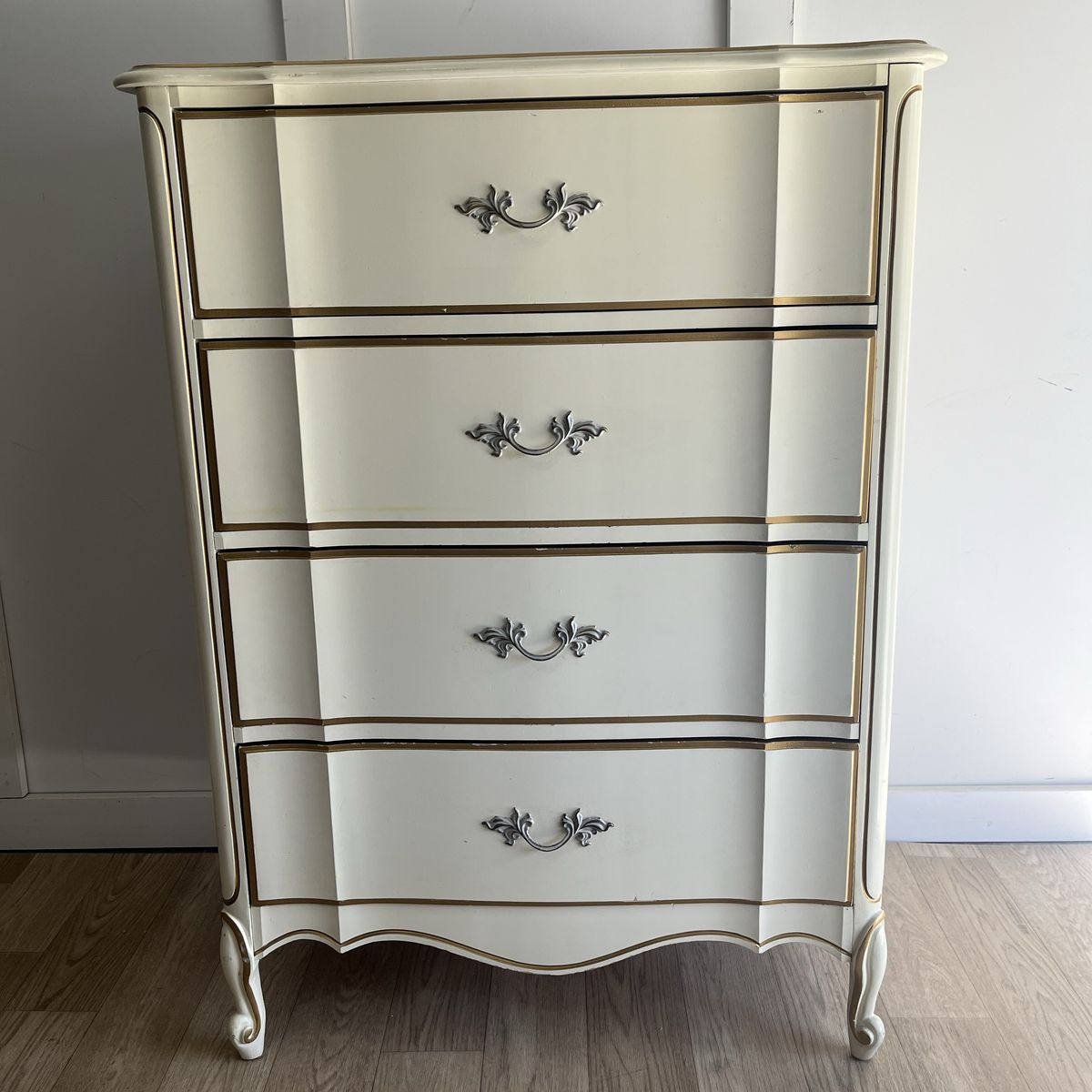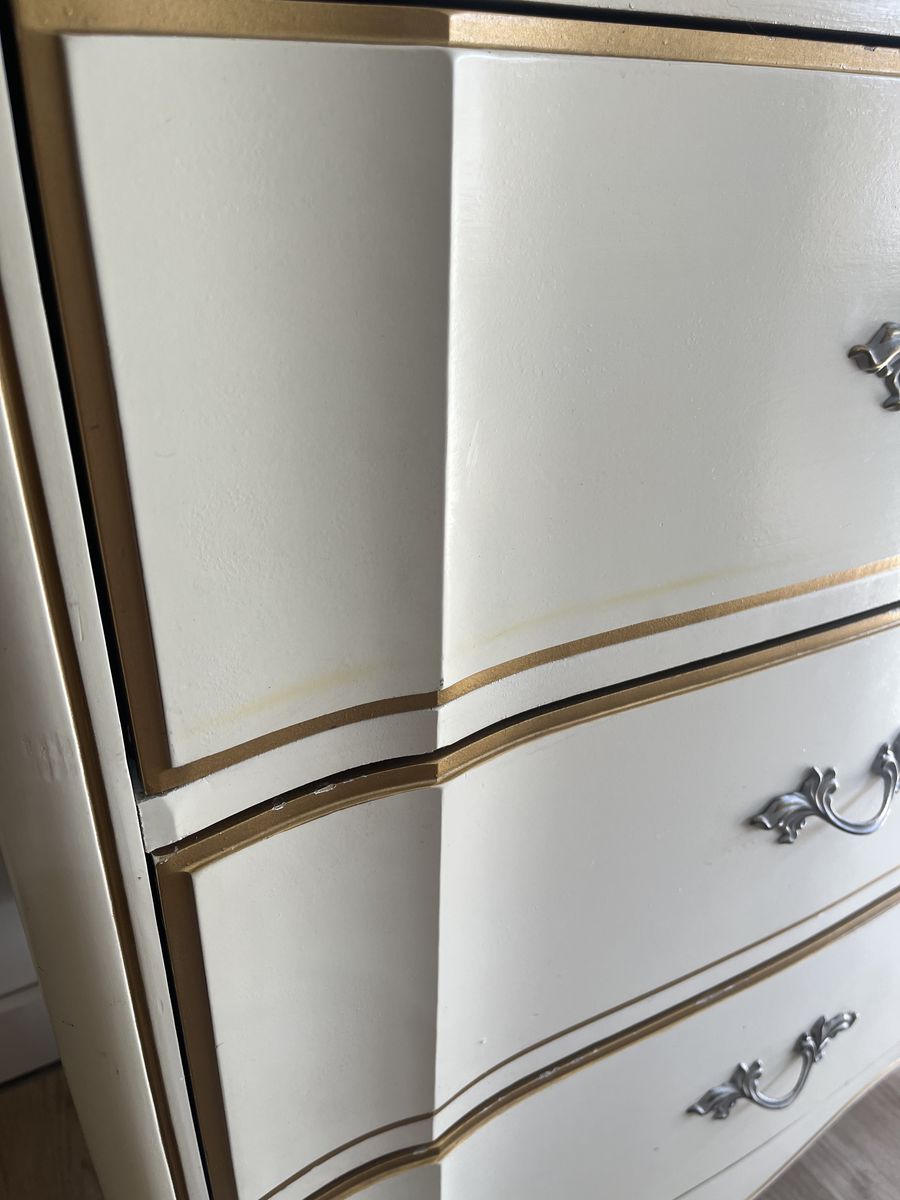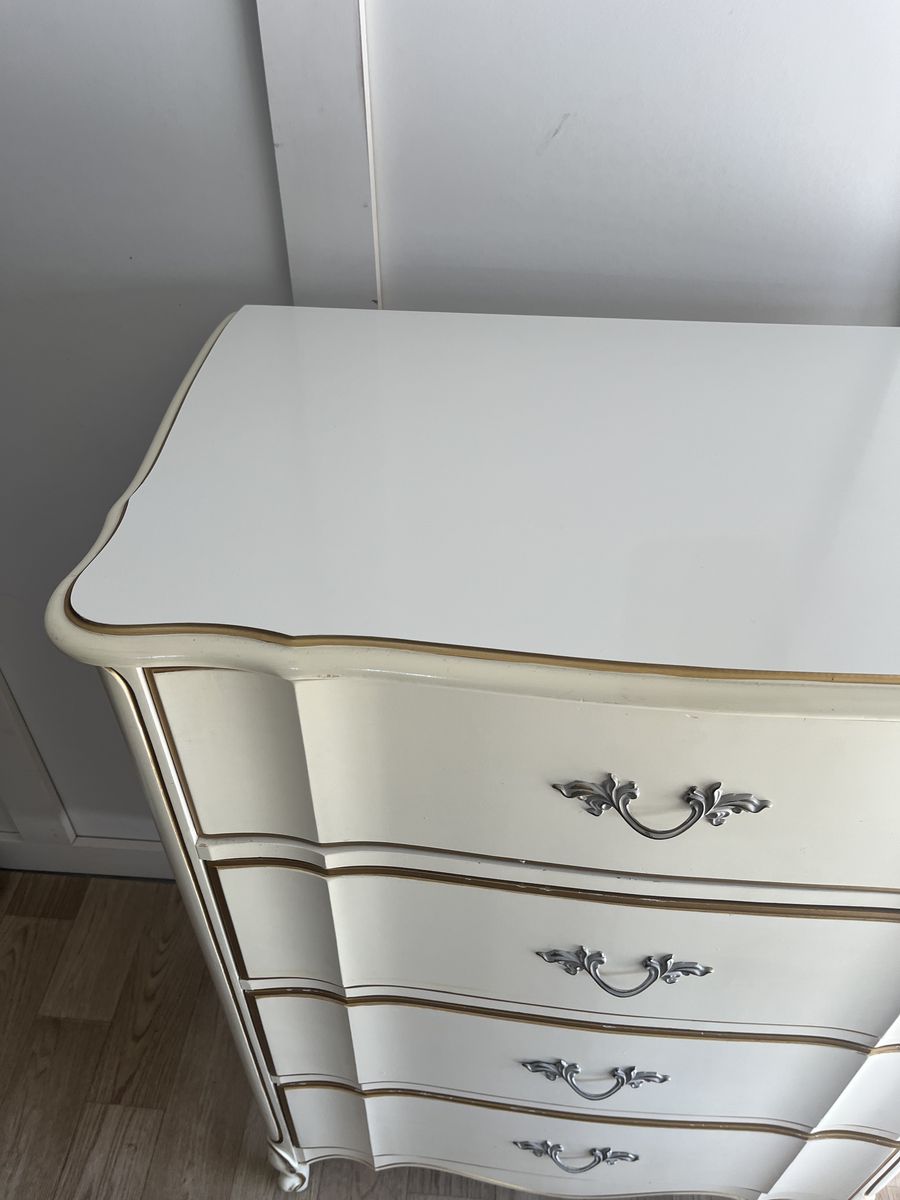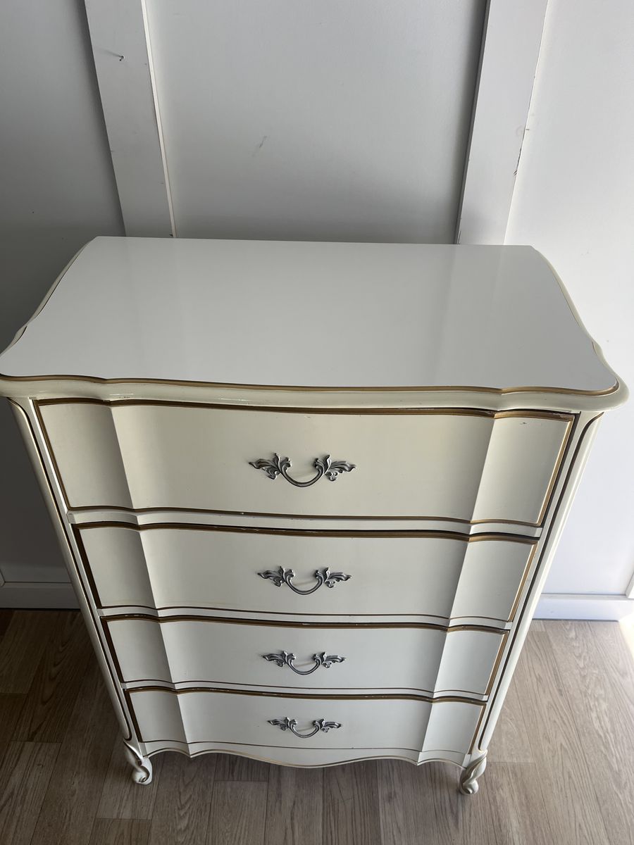 Four-Drawer French Provincial Dixie Dresser, Smoke free, plastic top. Some nicks and dings but overall great condition.