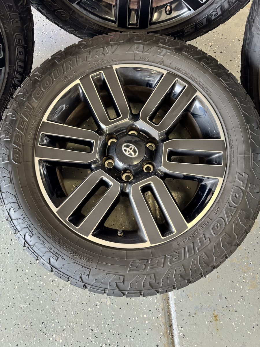 VenmoFactory Toyota wheels and Toyo AT3 tires in great shape with only about 10k miles on them.