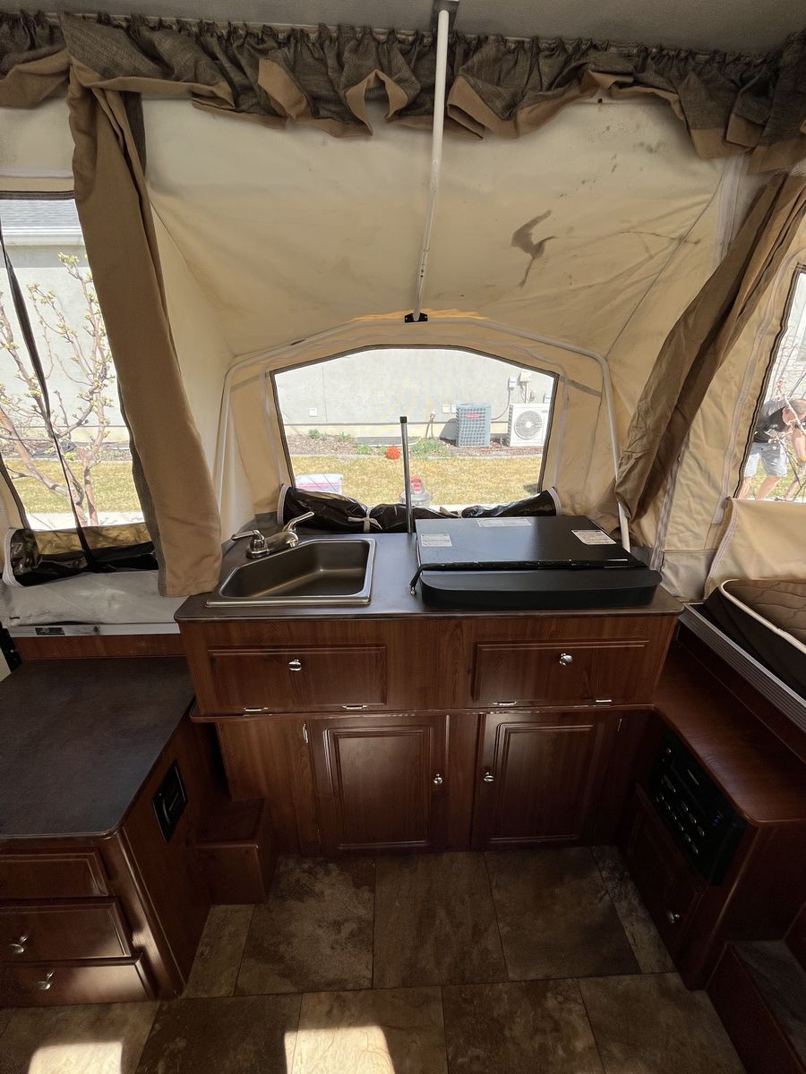 ZelleThis camper has been to Canada, the Atlantic, all over Utah, and more! Super clean, runs well, and has been a great source of fun for our family of 8 for the last 10 years. Our kiddos decided they could grow up and so it's time for another family's adventures! 3 large beds, pop out kitchen, heater, lots of storage, bedding included.
