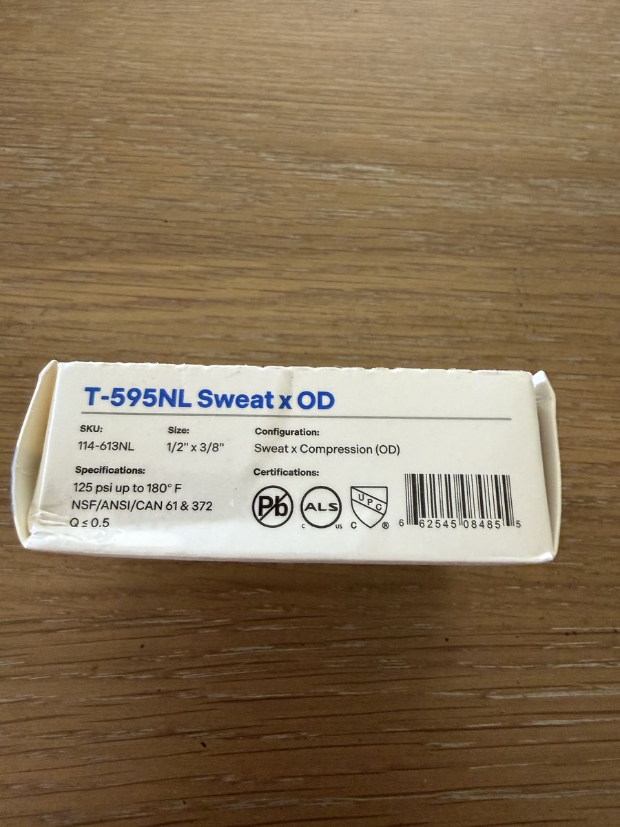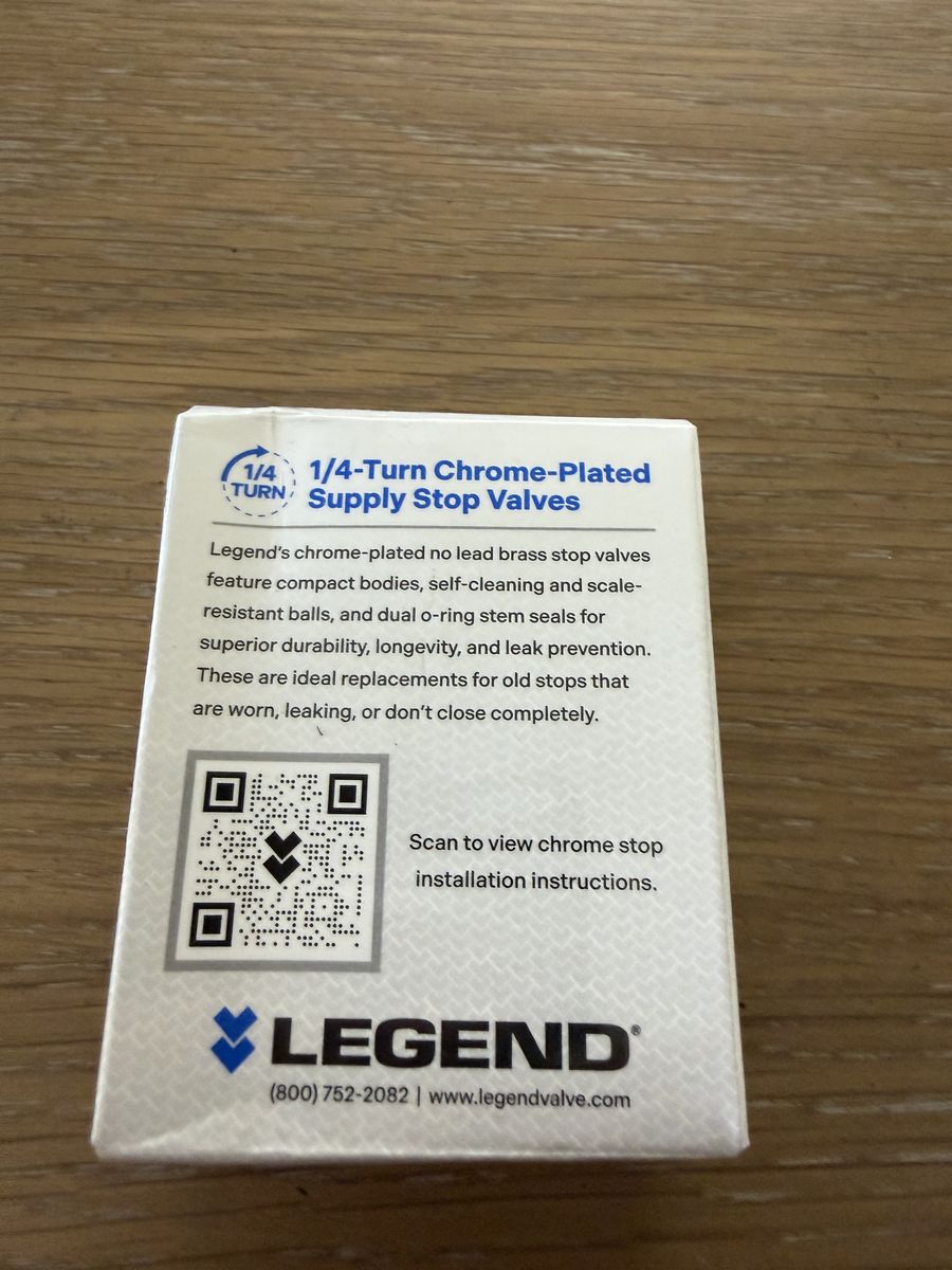 Legend 114-613NL No Lead Chrome Brass 1/4 Turn Angle Stop Valve, Sweat x OD (Compression) 1/2" x 3/8"