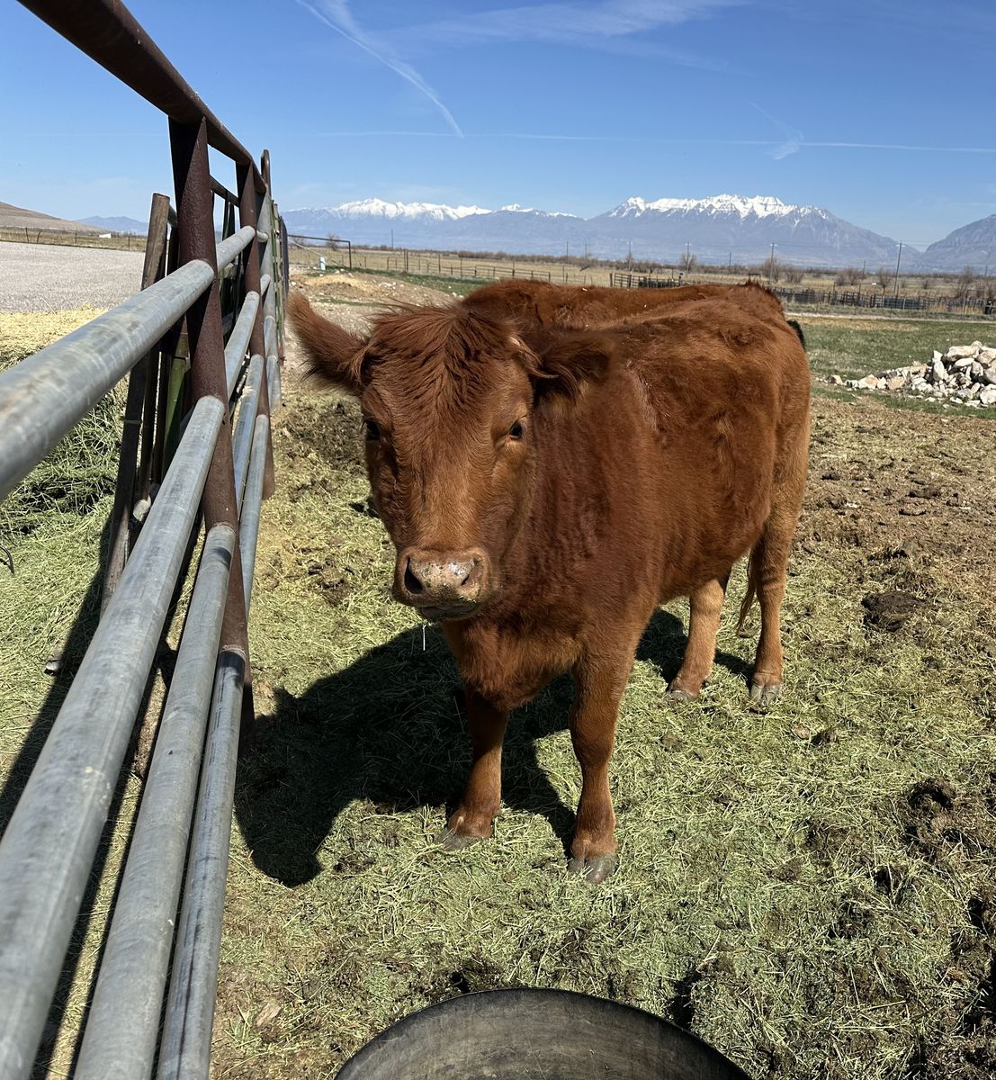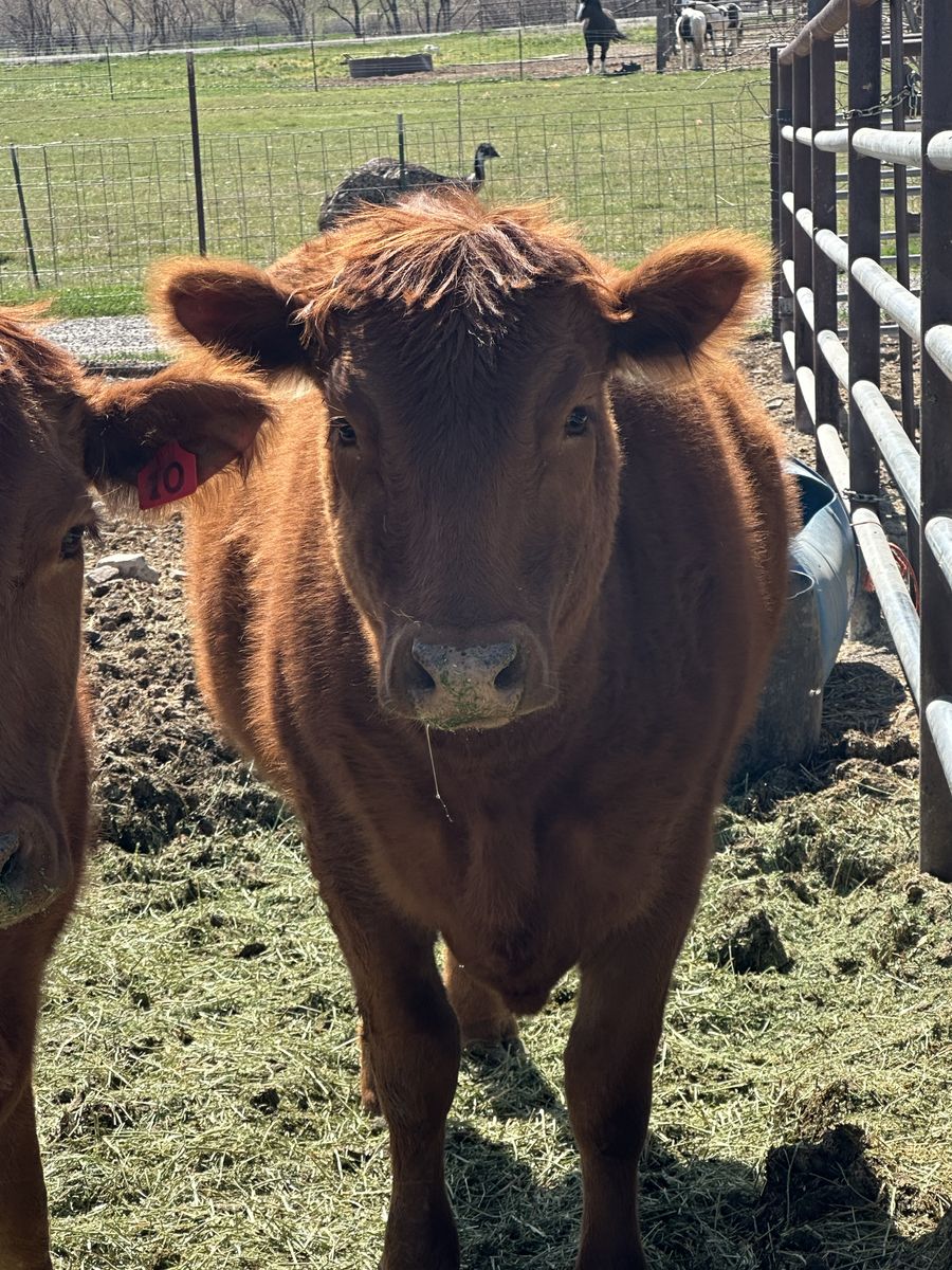 2 year old Red Angus Cross heifer, approximately 900-1100 pounds.