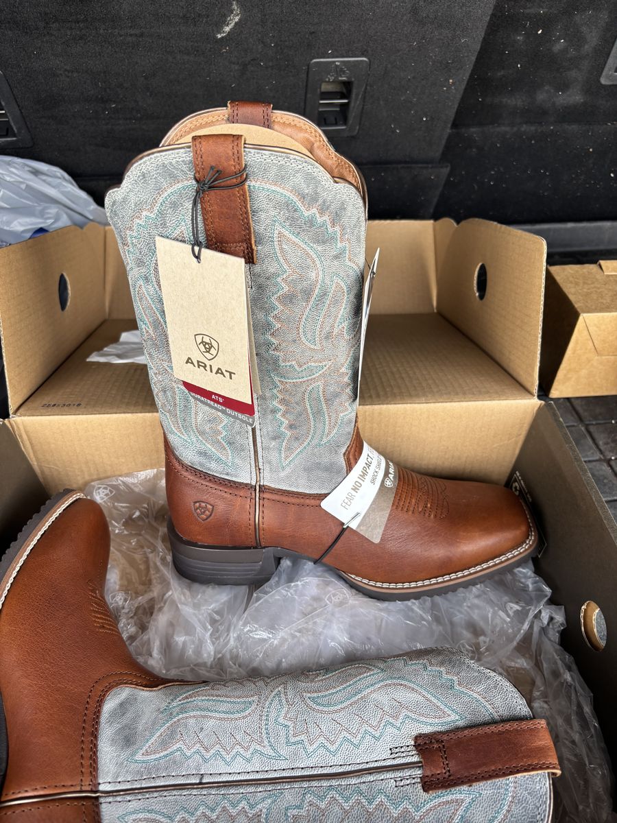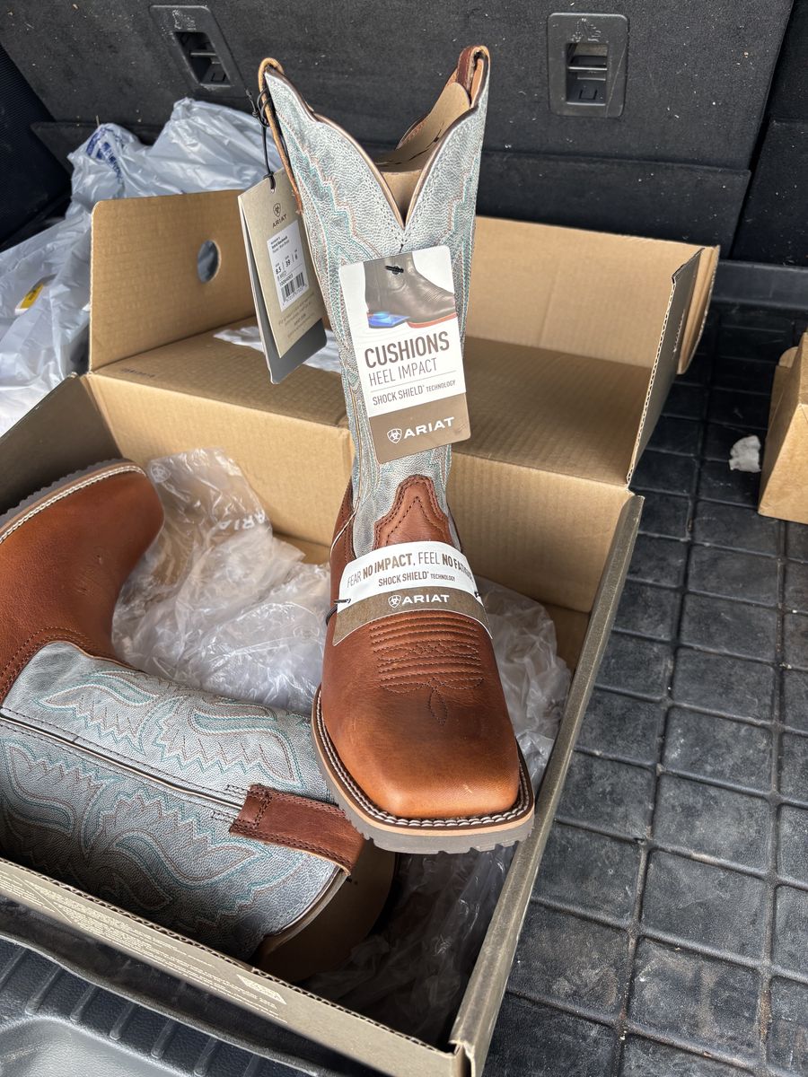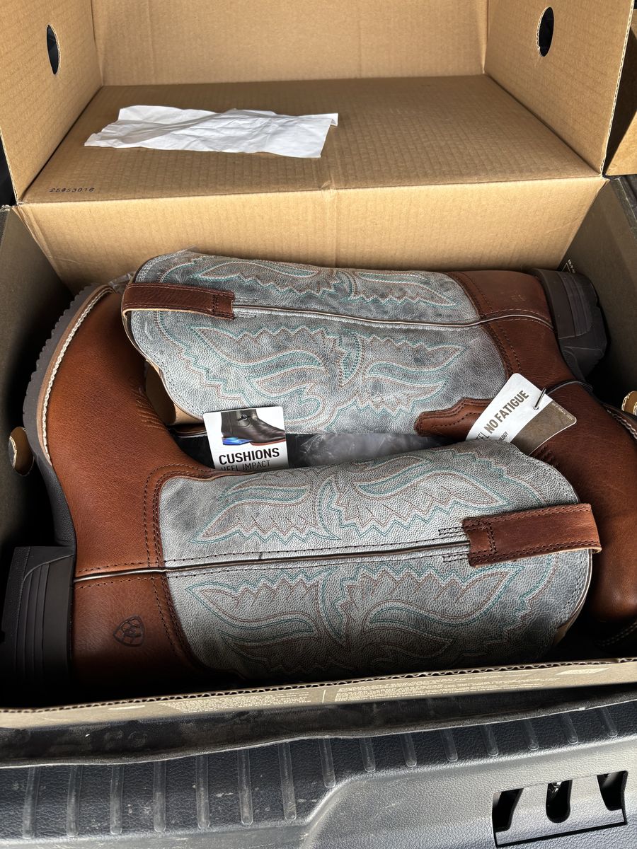 PayPalBrand new, never worn Ariat Women’s Hybrid Ranchwork Western boots in size 8.5B. These were a birthday gift for my daughter, but they don't fit and the store won't allow a return.