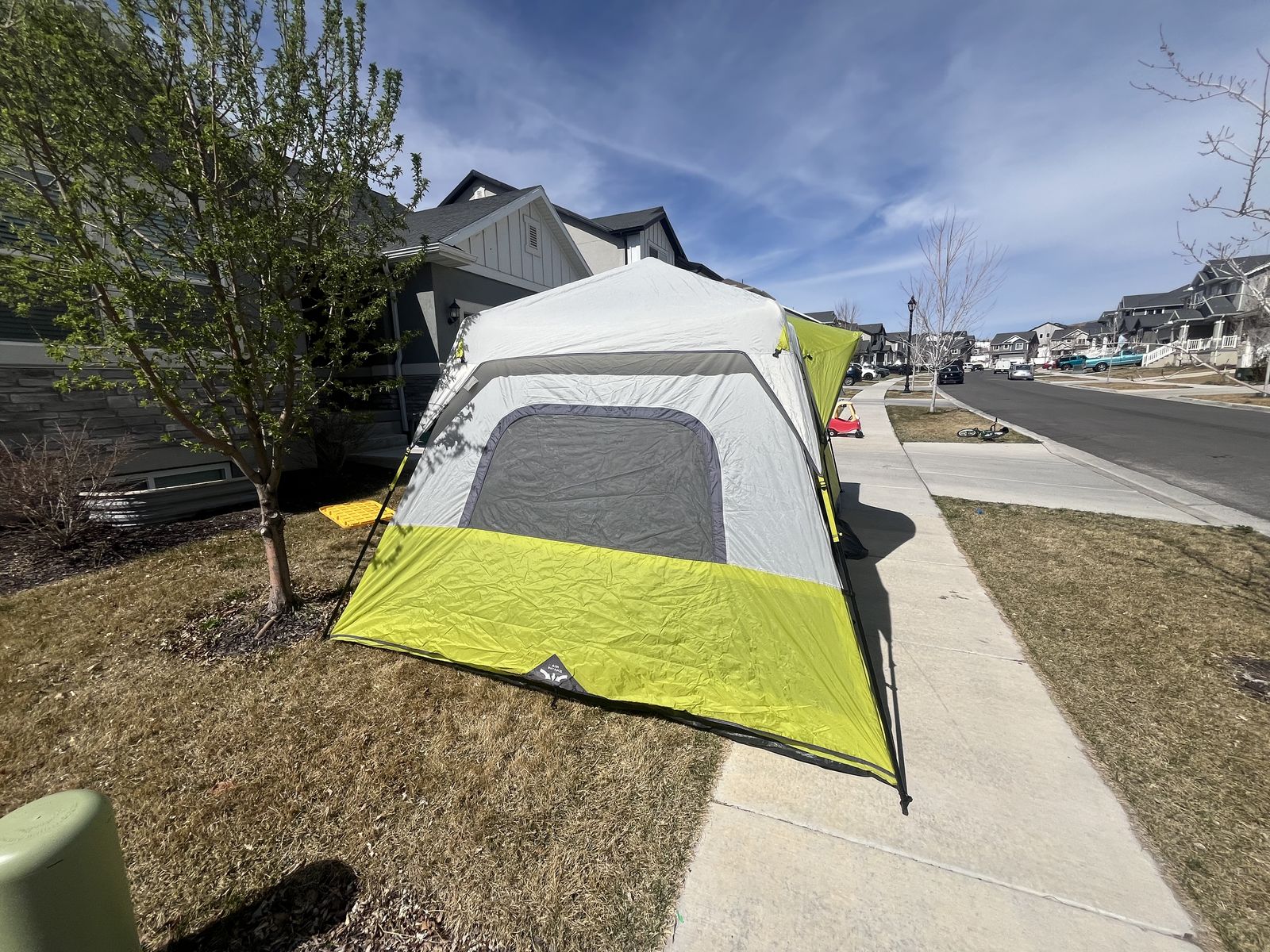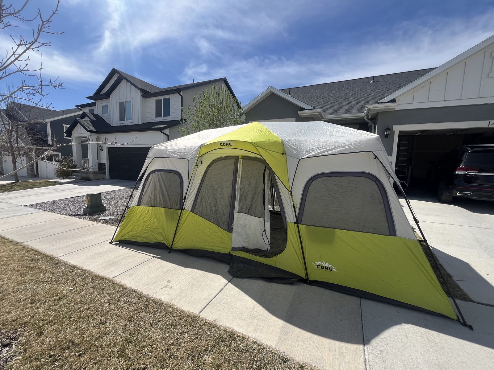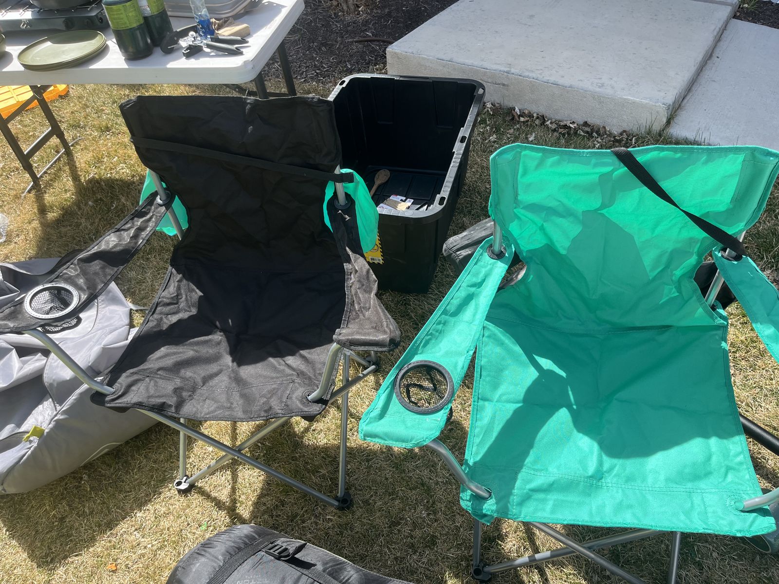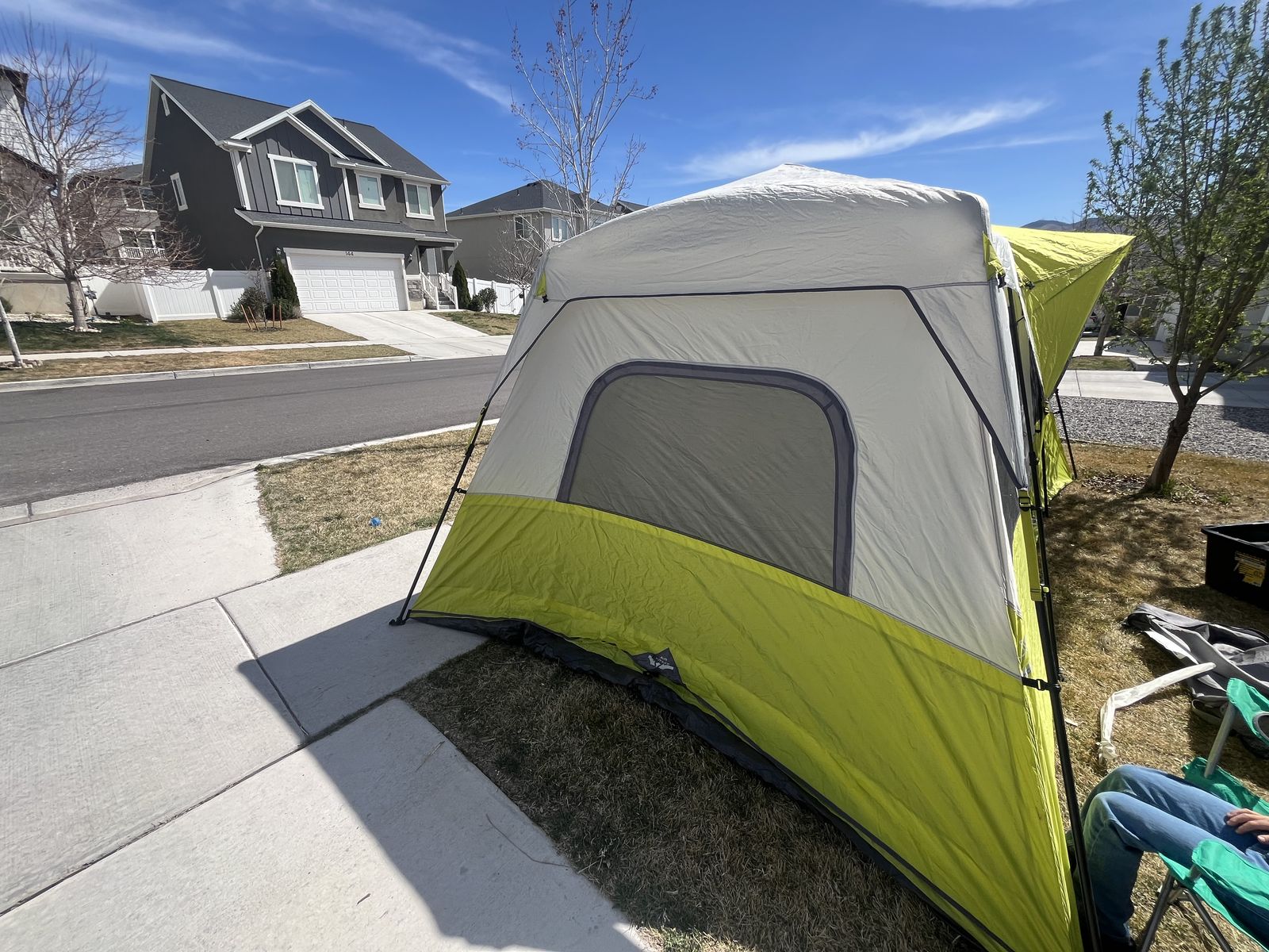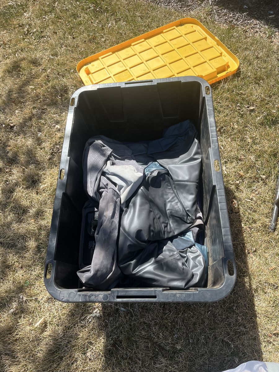If you are looking to get into camping but not sure where to start, what to get, or can’t imagine spending the amount of money it takes to get a full outfit, look no further. Here is a complete camping setup for you and your family! Comes complete with a 12 person core tent that can be put up with 1 person! (Plus tarp that goes under the tent) Queen size sleeping bag that is rated for 0 degrees. Queen size air mattress (I’m 95 percent sure it’s one without a hole 🤞) at least it didn’t when I used it the last time. Plus the air pump to go with it. 2 camping chairs, a Coleman 2 burner propane stove with 3 propane canisters. 3 plates, 3 bowls, a collapsible washing container, camping frying pan, a spatula, can opener, and egg container. The two black storage totes are yours as well to stay organized with room to add more gear as you need it! Table in the photo also comes with this set! Be ready to go camping this year with the confidence you need that you have everything you need to enjoy the great outdoors!