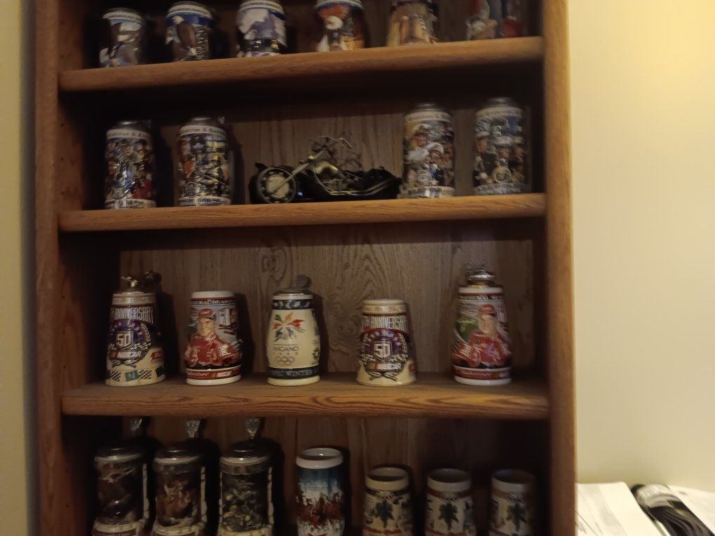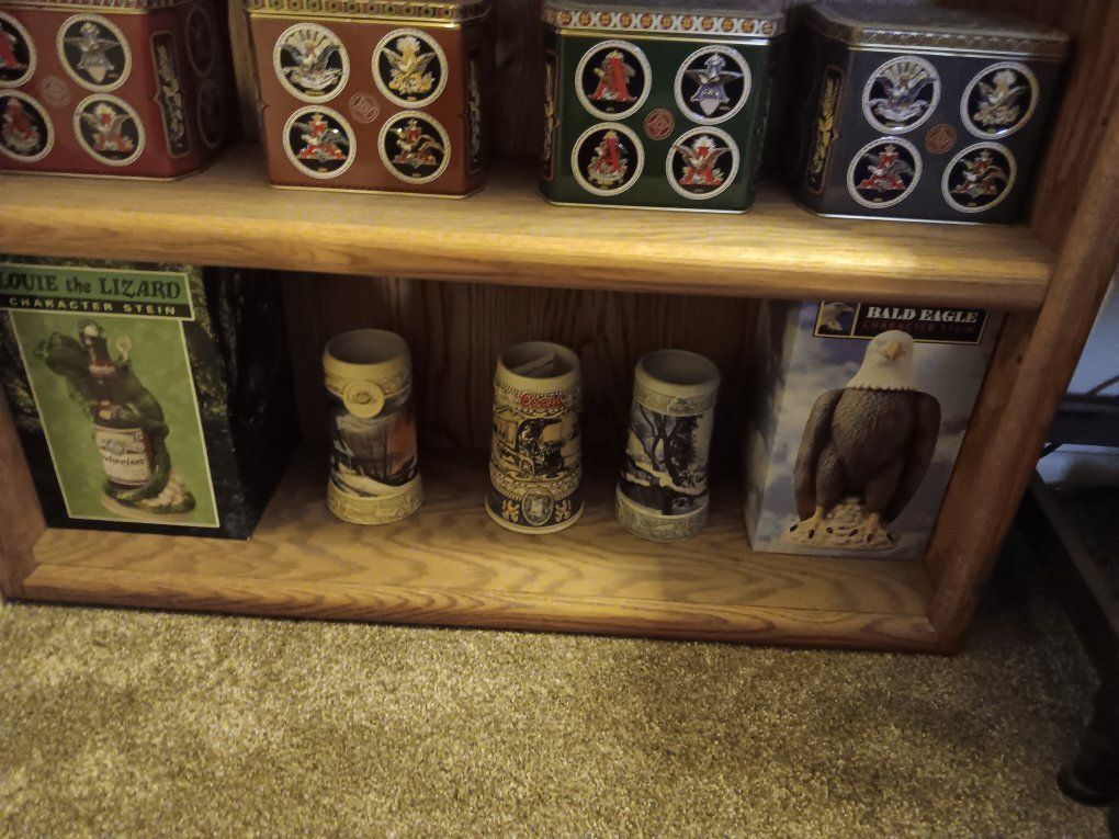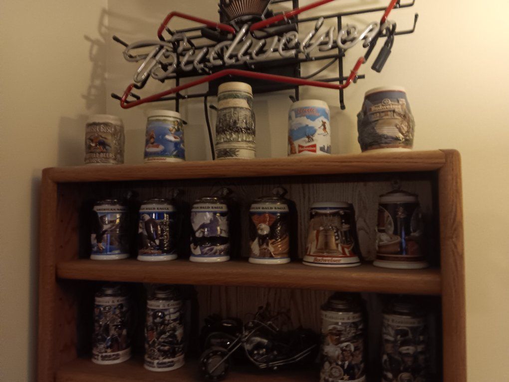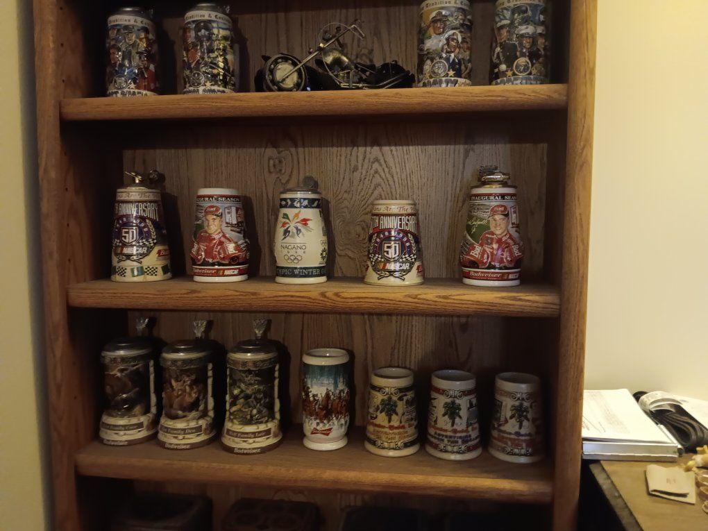 over 30 beer mugs. mostly budweiser