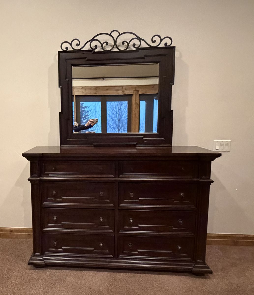 VenmoBeautiful king bedroom set with dresser and mirror.