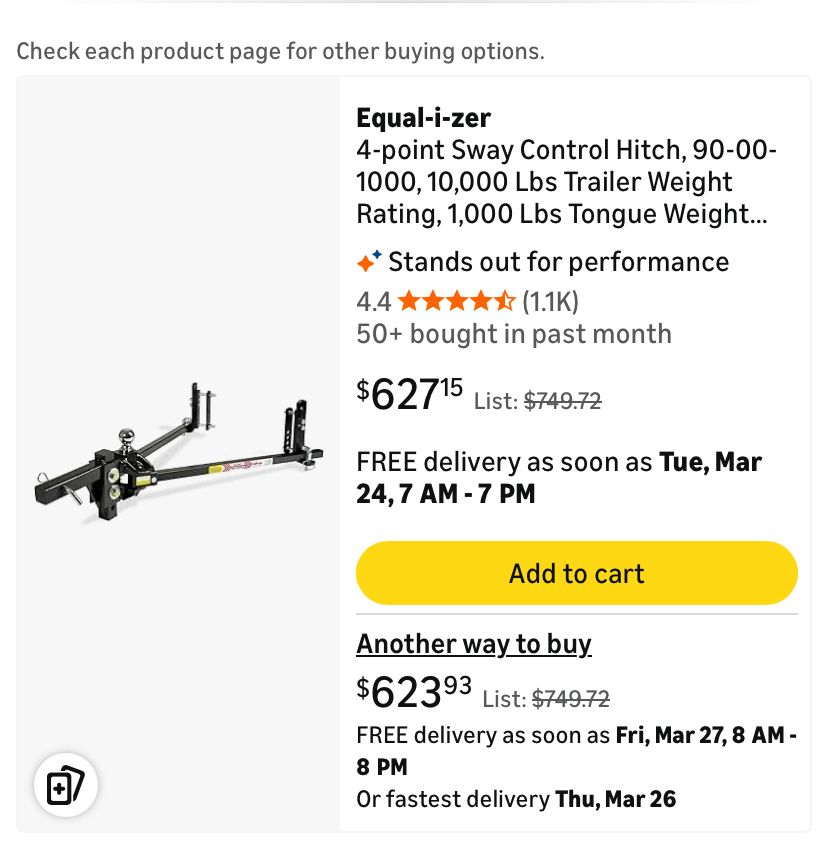 4-point sway control hitch. 10,000 lbs trailer rating,1,000 lbs tongue weight.