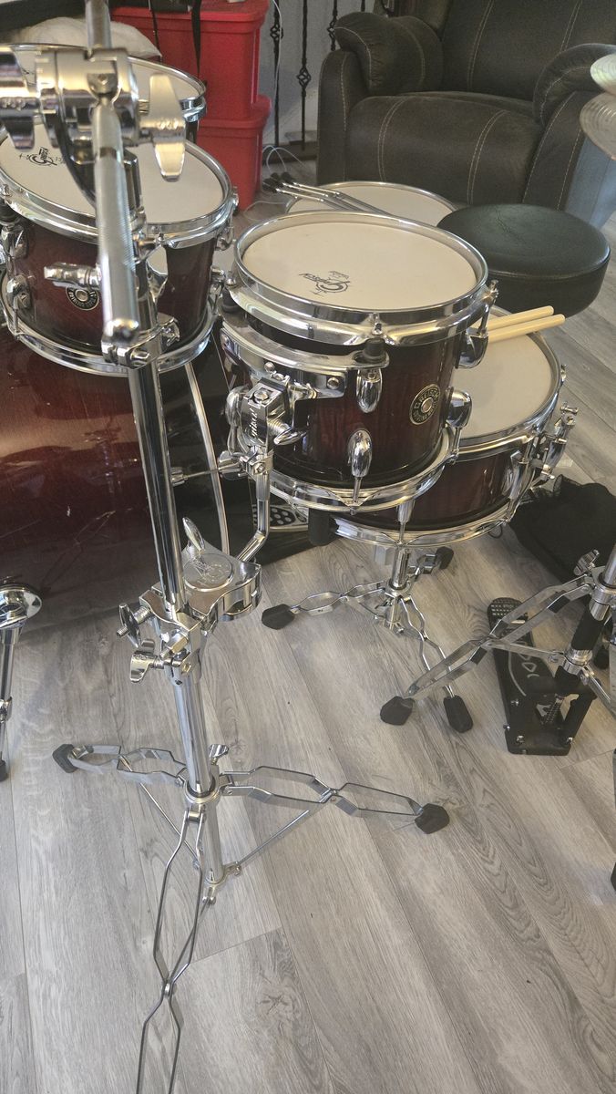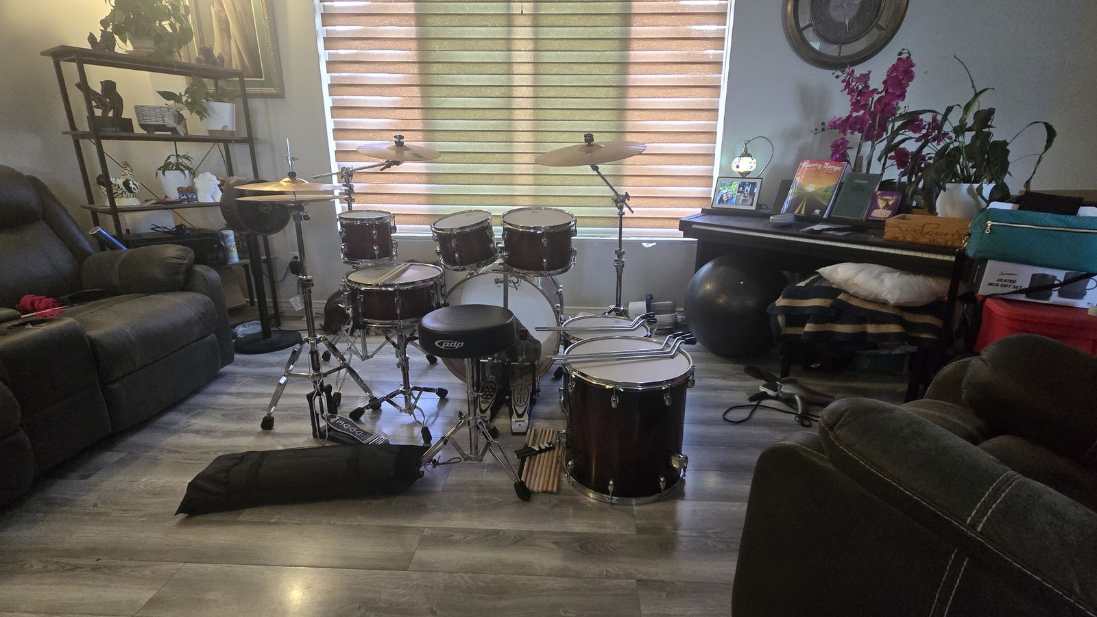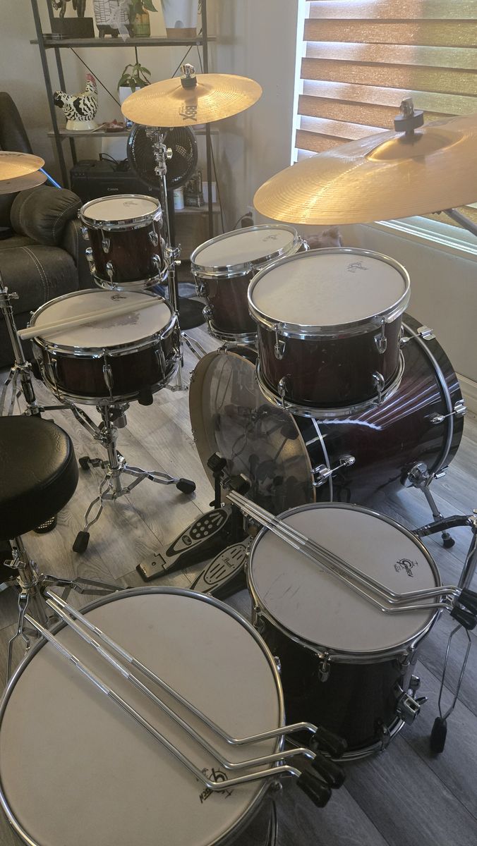 Venmo$1500(OBO) This drum kit has served me well but ill be moving into apartments without any space for it. 7 pieces are snare, kick, and 5 toms. All drums are maple (warmer than poplar) price includes cymbals and hardware. Just the 7 drums new is usually $1400, cymbals are at least $200, hardware is at least $300. Along with extra trinkets that are usually $20 a piece. Estimated total NEW value is over $2000. Spare sticks and drum rug included.