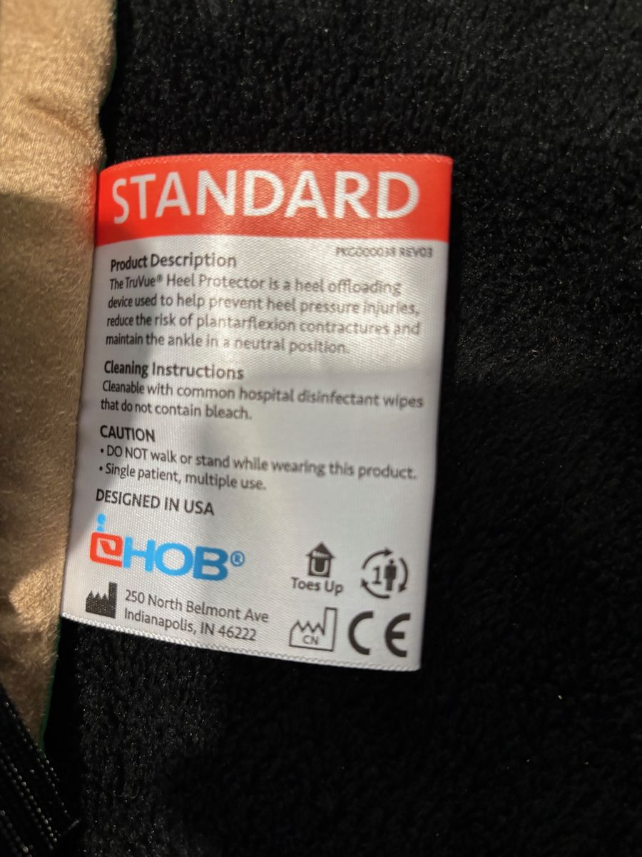The TruVue Heel Protector better meets the individual needs of patient’s with a custom build around the foot and ankle, ensuring the heel is properly offloaded and patient comfort is maintained. You can have confidence patient’s are protected throughout the continuum of care, as the low profile design helps to prevent heel pressure injuries and hypertension of the knee. Size Standard Calf Sizing 13 – 18” (33 – 45cm)