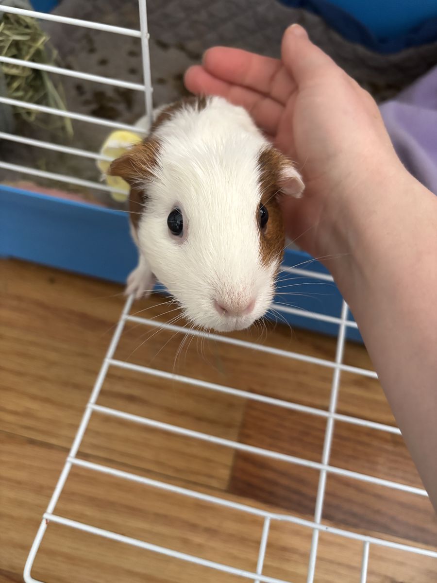 ZelleThis sweet girly (named Piggy by our kids) is in need of a new home. We have loved her for the last (almost) 3 years but our kids don't spend as much time with her anymore. She is sweet, loves carrots and strawberry tops, and comes with all the supplies! She was born in a litter of only males and when we got her, had never been with another guinea pig. She does like attention from us though, so she will likely do well with a piggy companion as well.