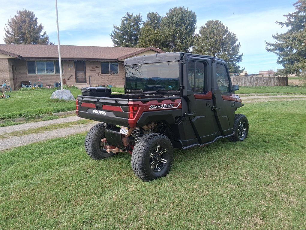 2021 Polaris ranger Northstar ultimate crew It has made us alot of great memories but its time to move on and help you create memories of your own. It has been serviced at Golden Spike Polaris. Has a new factory engine at 12580. Comes with spare wheel and tire and storage box in the bed. $20500 o.b.o.