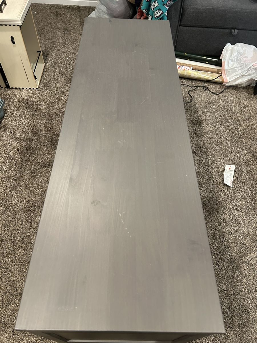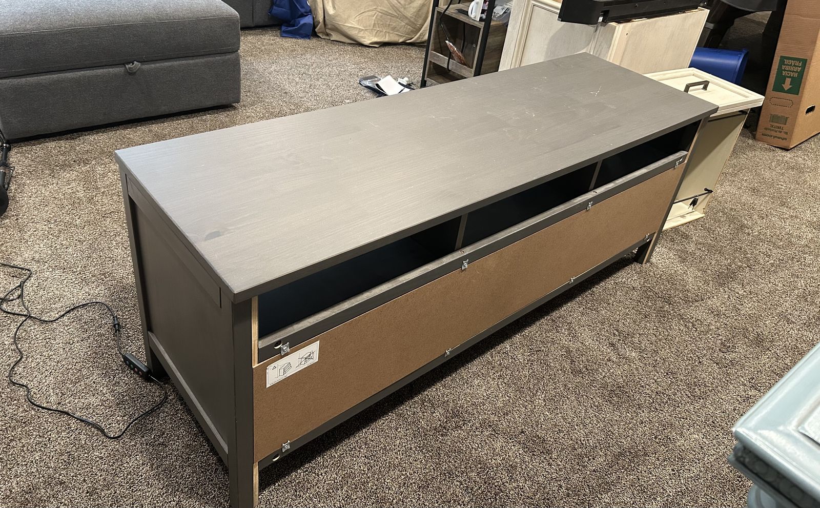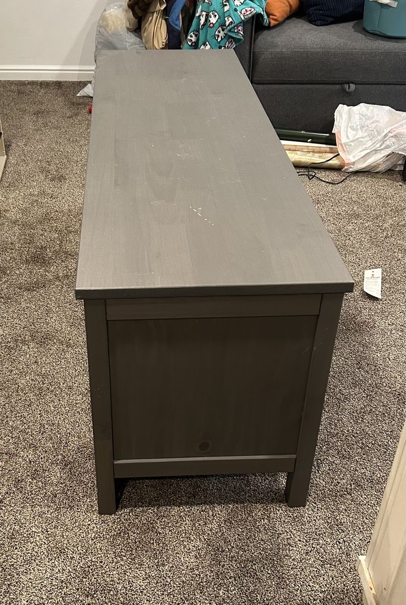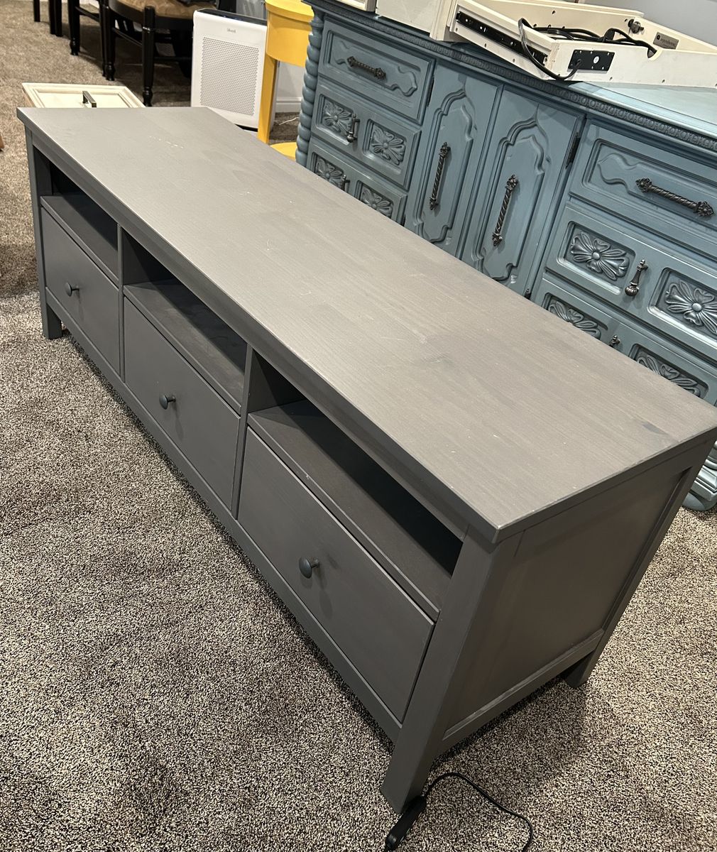 VenmoGrey 3 drawer 3 shelf TV stand from IKEA. Drawers function like new. There are a few scuffs on the top surface. Sales new for $400.