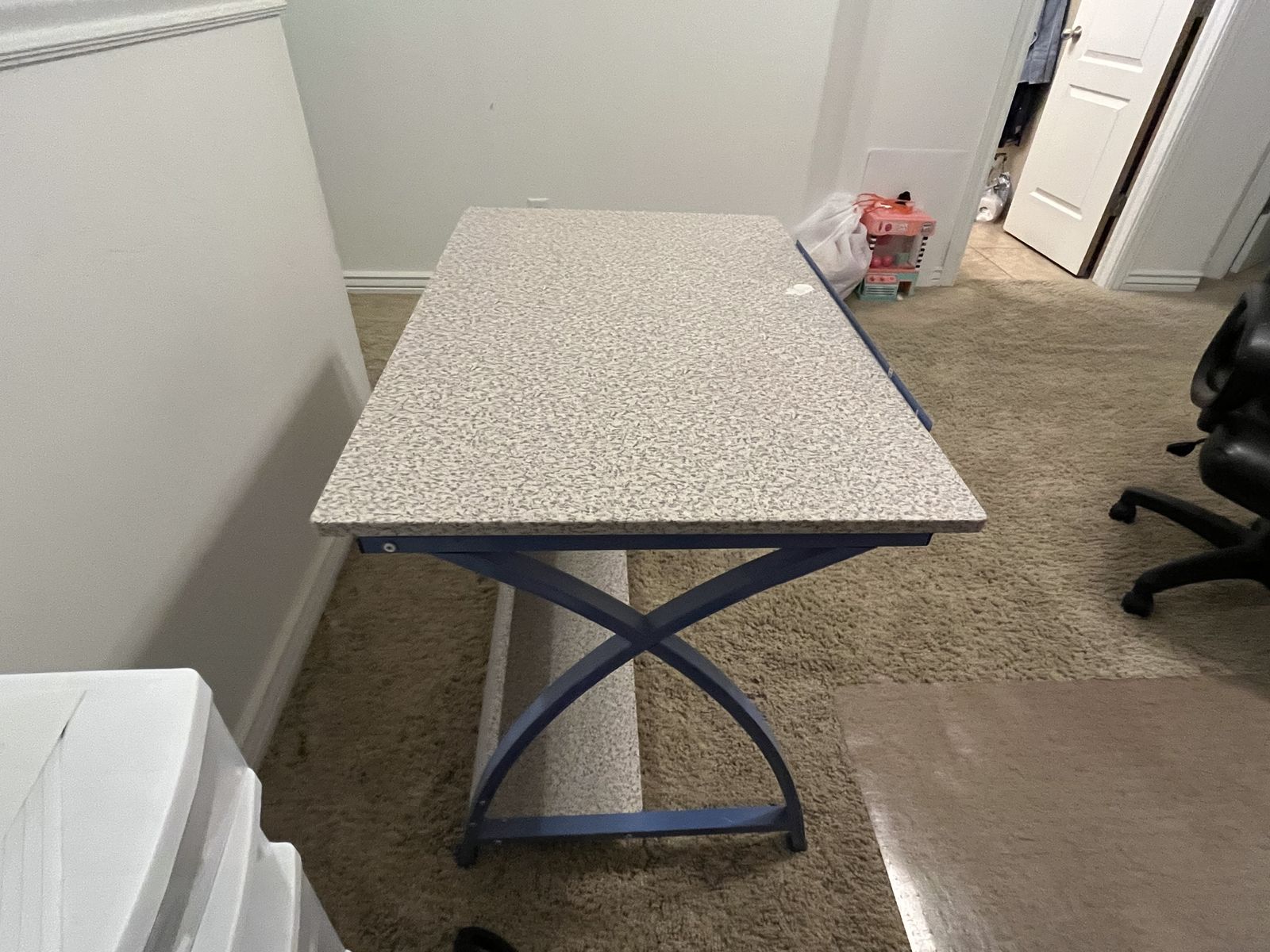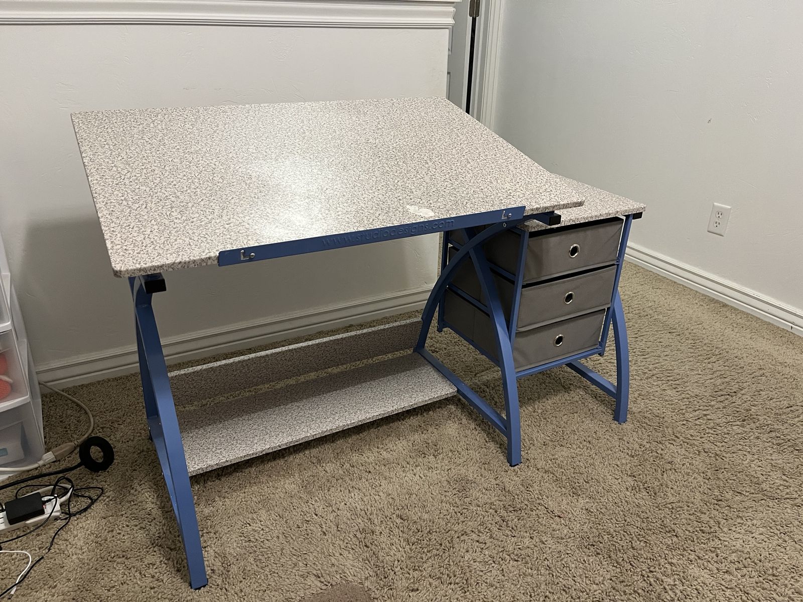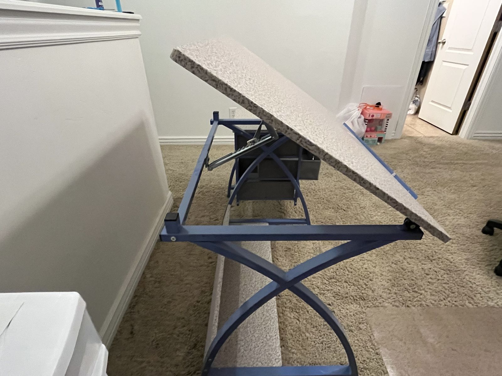 PayPalAdjustable art desk, the top surface measures 36” wide by 23.5” deep. The side table top measures 14”x 15”. The tilt mechanism works well as it has a front edge stop. The table surface has a small delamination of the surface (~2” x 2”), but is only the top film covering the table, so about the thickness of a sheet of paper.