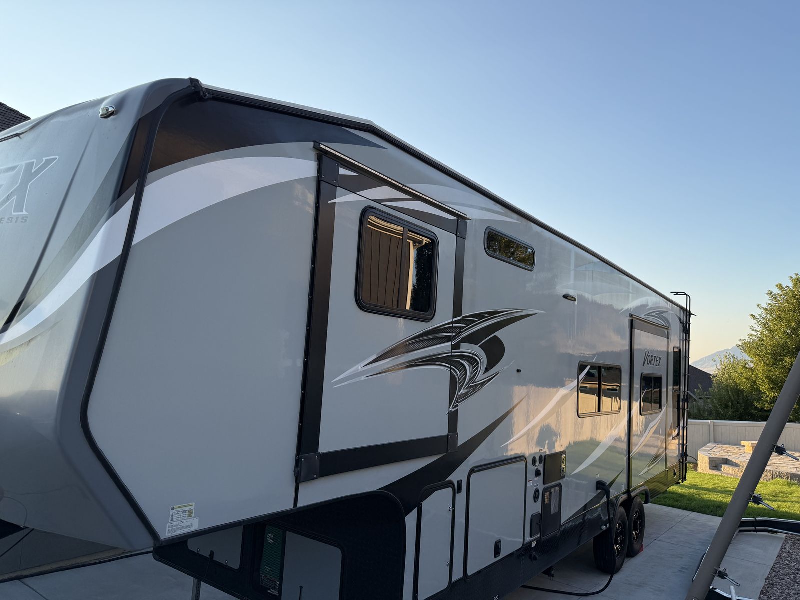 I’m a private seller. The 2019 Genesis Supreme RV Vortex 3317V is a luxurious fifth wheel trailer designed for those who enjoy the finer things in life while on the road. With a sleek exterior and spacious interior, this model offers comfort and style for all your travels. The Vortex 3317V is equipped with all the amenities you need for a perfect getaway, including a fully-equipped kitchen, a cozy living area, a queen-sized bed, and a full bathroom. Whether you're planning a weekend camping trip or a cross-country adventure, this RV has everything you need to make your journey enjoyable and stress-free.