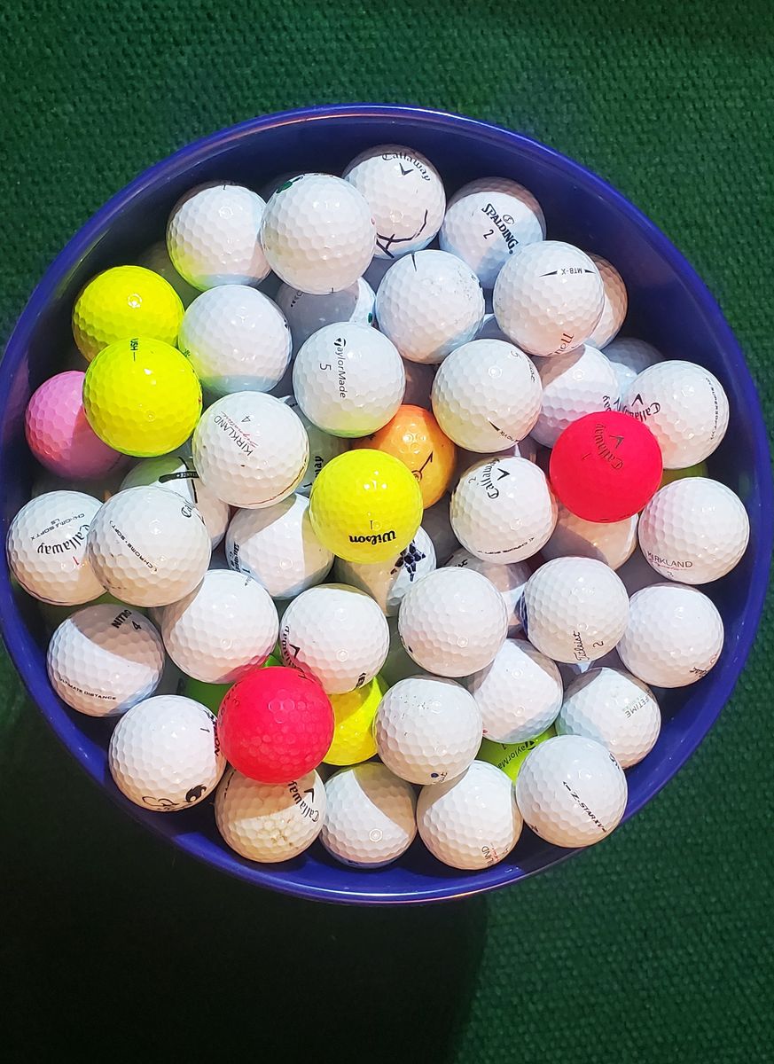 I have several 5 gallon buckets of used golf balls. There are approximately 280 balls per bucket. These balls have all been picked up on the golf course during the last year. There is a huge variety of brands and all balls are in good to excellent condition. There are no junk golf balls. I am asking $65 per bucket or $60 per bucket if you bring your own container. This is approximately 25 cents per ball. Cash Only.