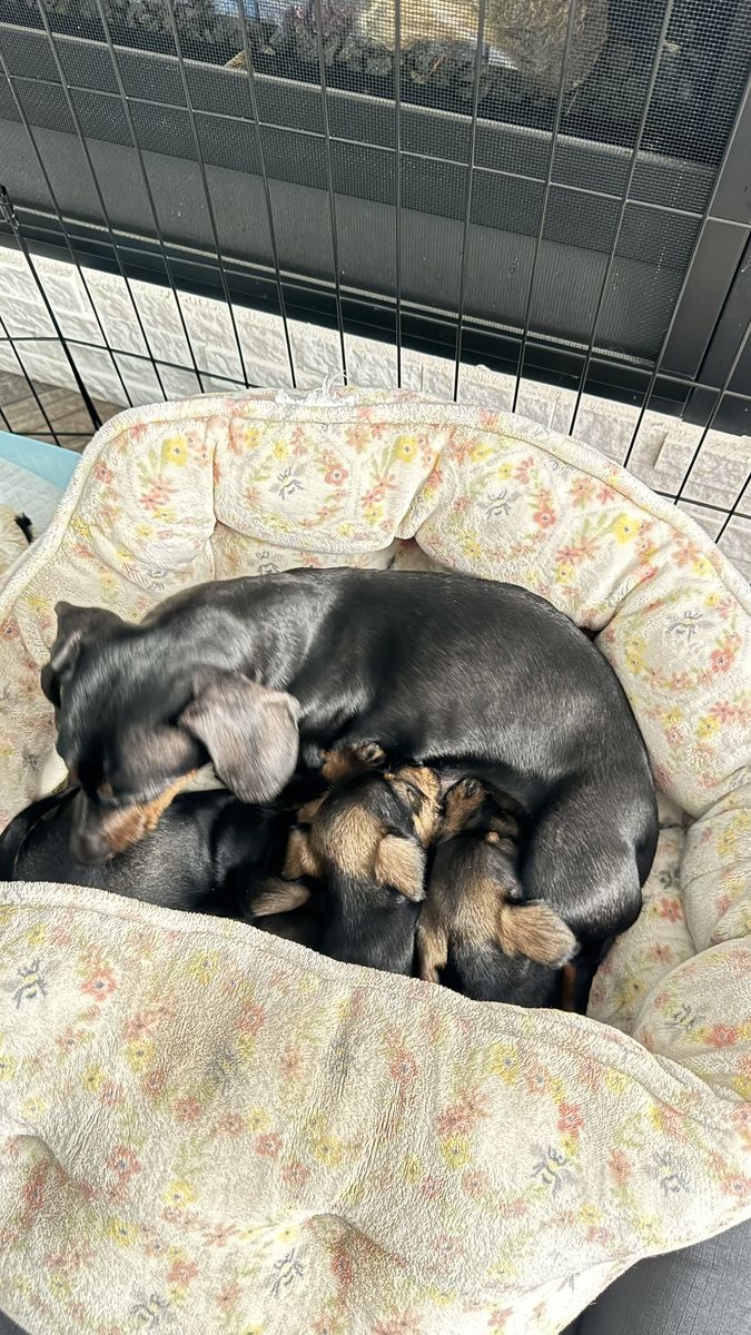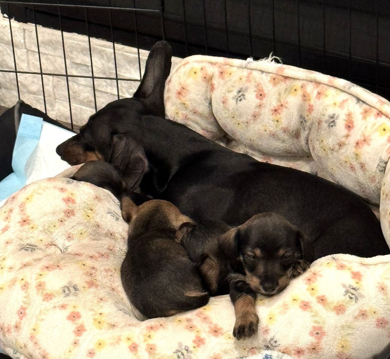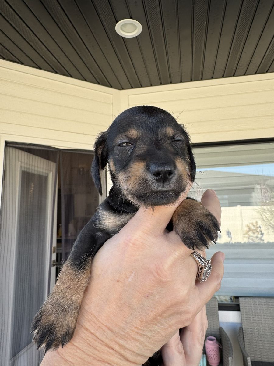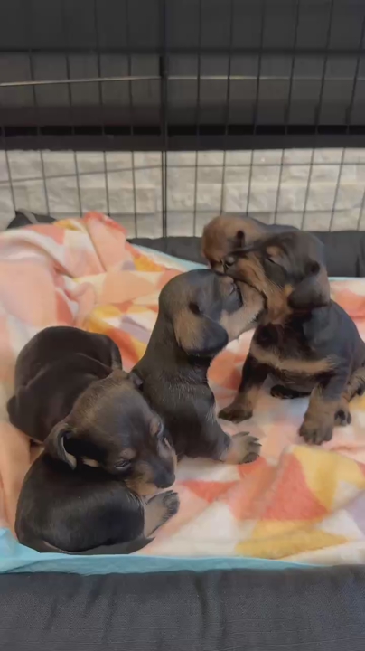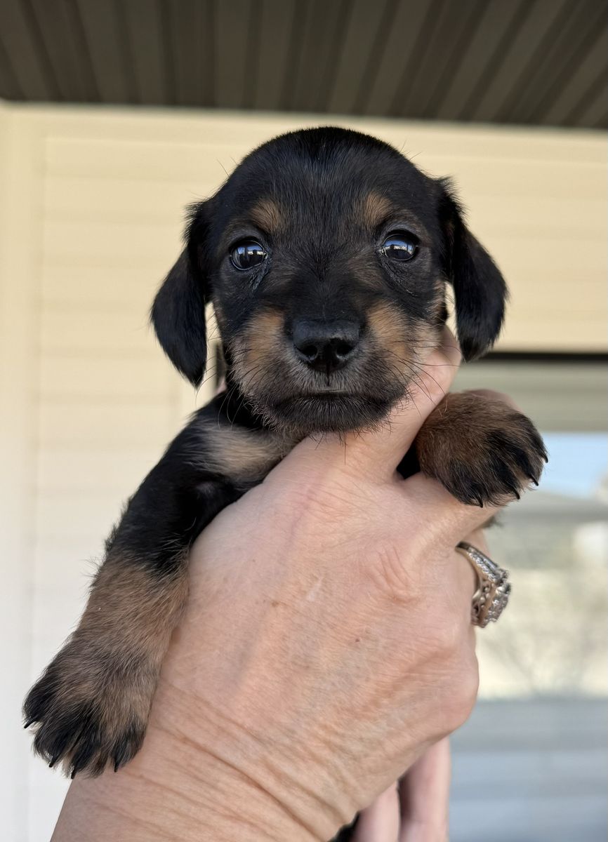 ZelleBeautiful Schnoxie puppies available from a rare breeding. Schnoxies are a unique cross between a Miniature Dachshund and Miniature Schnauzer, known for their charm, intelligence, and loyal companionship.