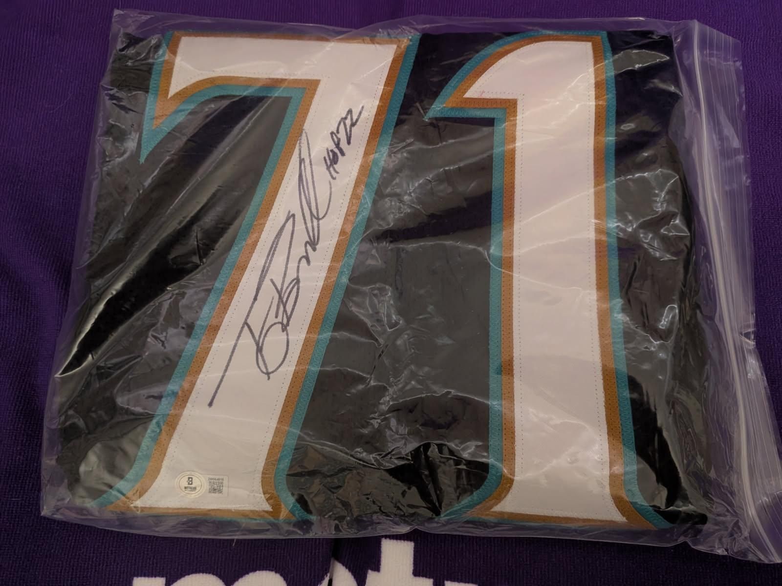 VenmoThe product is a custom jersey autographed by Tony Boselli of the Jacksonville Jaguars. The autograph is authenticated by Beckett Authentication Services (BAS) and the jersey is considered an original piece of memorabilia. This item would be a valuable collectible for fans of football and the Jacksonville Jaguars, especially those interested in adding a piece of history from a Hall of Fame player to their collection