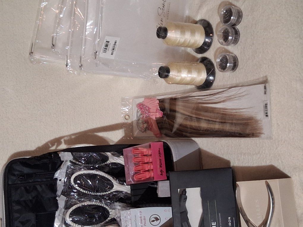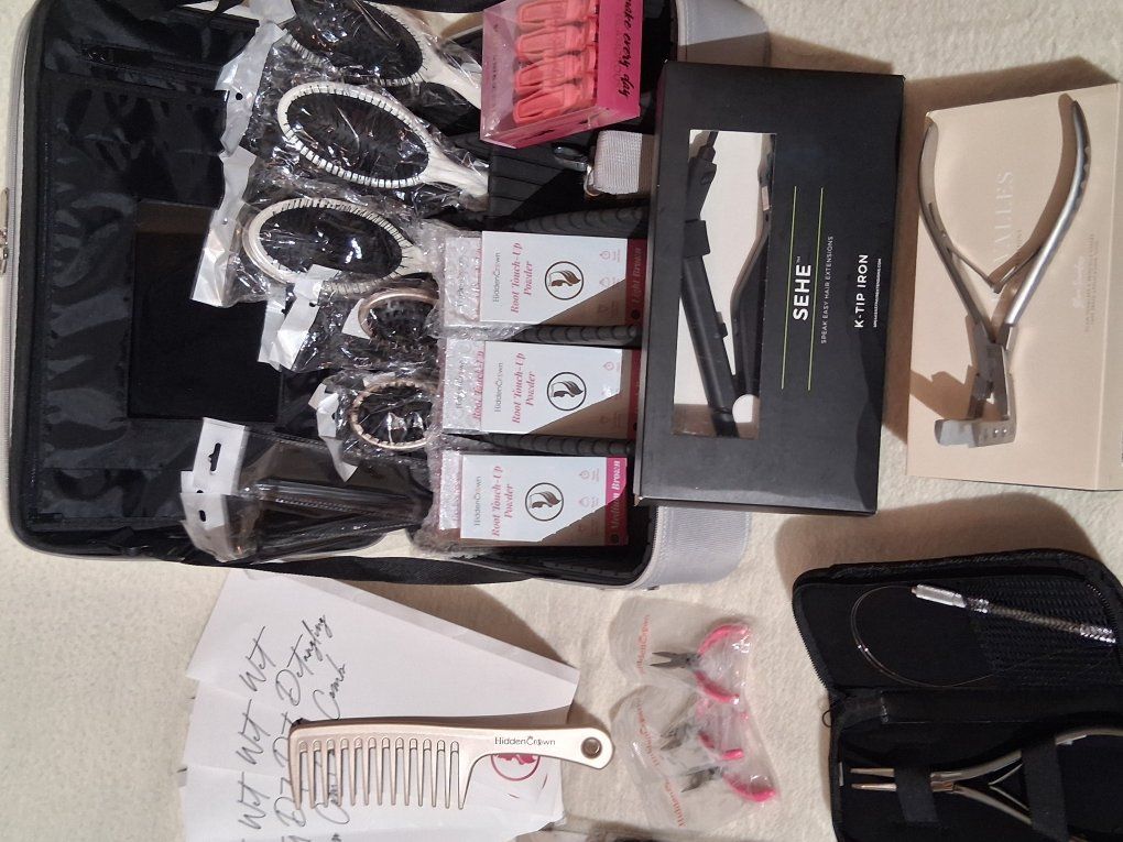 GooglePayWant to get started doing hair extensions? here is everything you need to hit the ground running. this complete kit is priced to sell. everything is new and unused and in original packaging. kit includes your choice between... 1- Hairtalk tool bag. (grey) or 1- Priscilla Valles x Glam Seamless wheeled tote with extendable handle. also your choice between... 1- Glam Seamless Color Ring. or 1- Priscilla Valles Color Ring. Items: 5- Sets Of Priscilla Valles Black Keratin Blend Hair Extensions. 2- Hidden Crown Light Brown Root Touch Up Powder. 2-Hidden Crown Medium Brown Root Touch Up Powder. 2-Hidden Crown Dark Brown Root Touch Up Powder. 1- SEHE K-Tip Iron. 3- Soft Brushes. 3- Mini Soft Brushes. 5- Black Hair Sectioning Comb. 5- Wet Detangling Comb. 3- Mini Extension Pliers. 1- Extension Pliers. 1- Beading Tool Kit. 1- Tape Press Application Tool. 1- Set Of (4) Maximum Hold Clips. 2- Nylon Bonded String. 3- Silicone Micro Beads. ( brown) 5- Clear Glam Seamless Bags.
